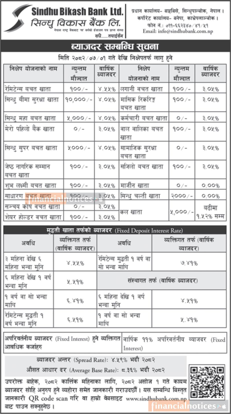 सिन्धु विकास बैंकको ब्याजदर सम्बन्धी सूचना - Interest Rates -