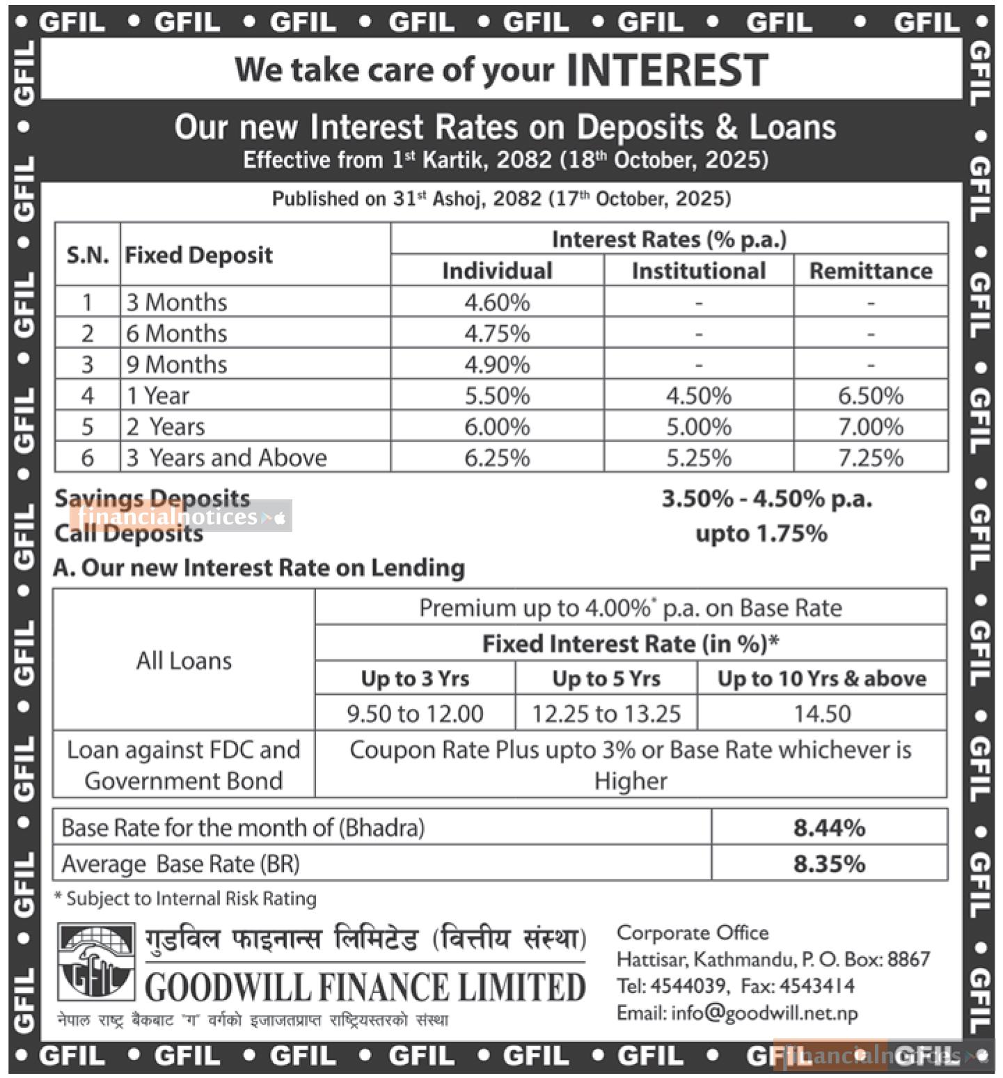 गुडविल फाइनान्सको कार्तिकदेखि नयाँ ब्याजदर लागू – कुन खातामा कति पाइन्छ ब्याजदर ?