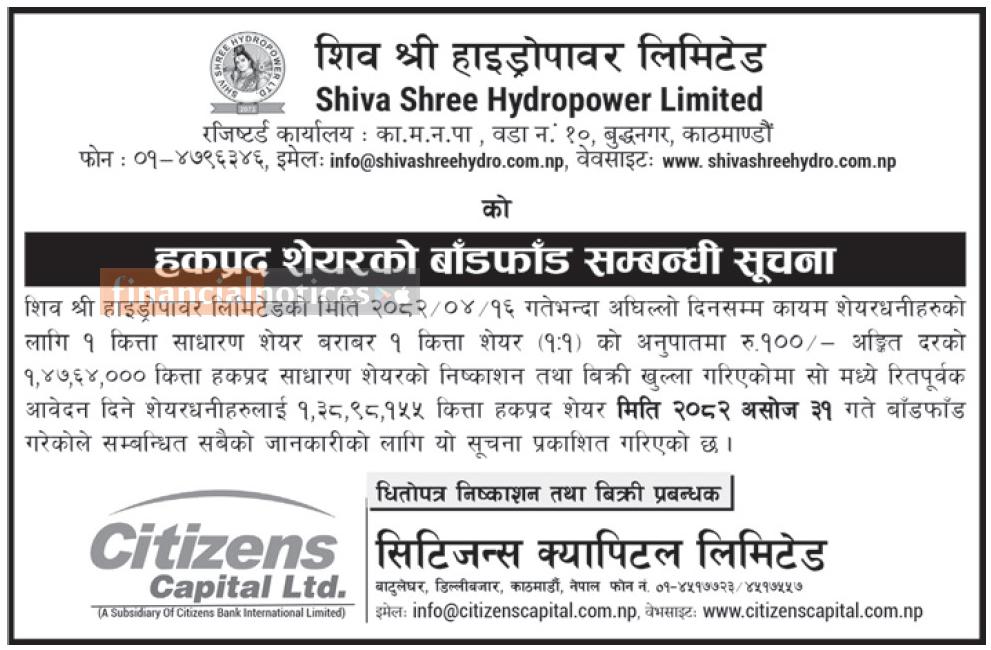 शिवश्री हाइड्रोपावरको हकप्रद शेयर बाँडफाँड सम्बन्धी सूचना