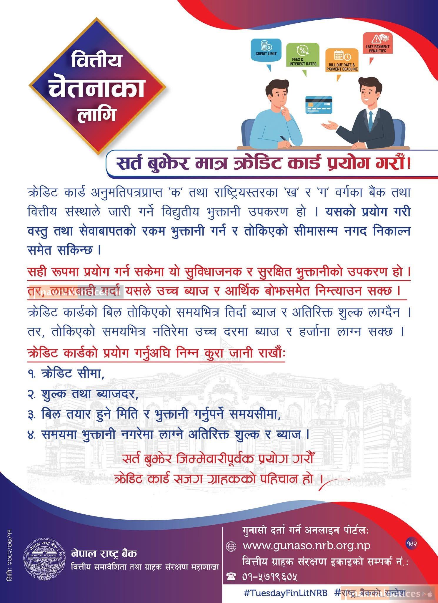 क्रेडिट कार्डको प्रयोग सन्बन्धमा नेपाल राष्ट्र बैंकको नयाँ सूचना -