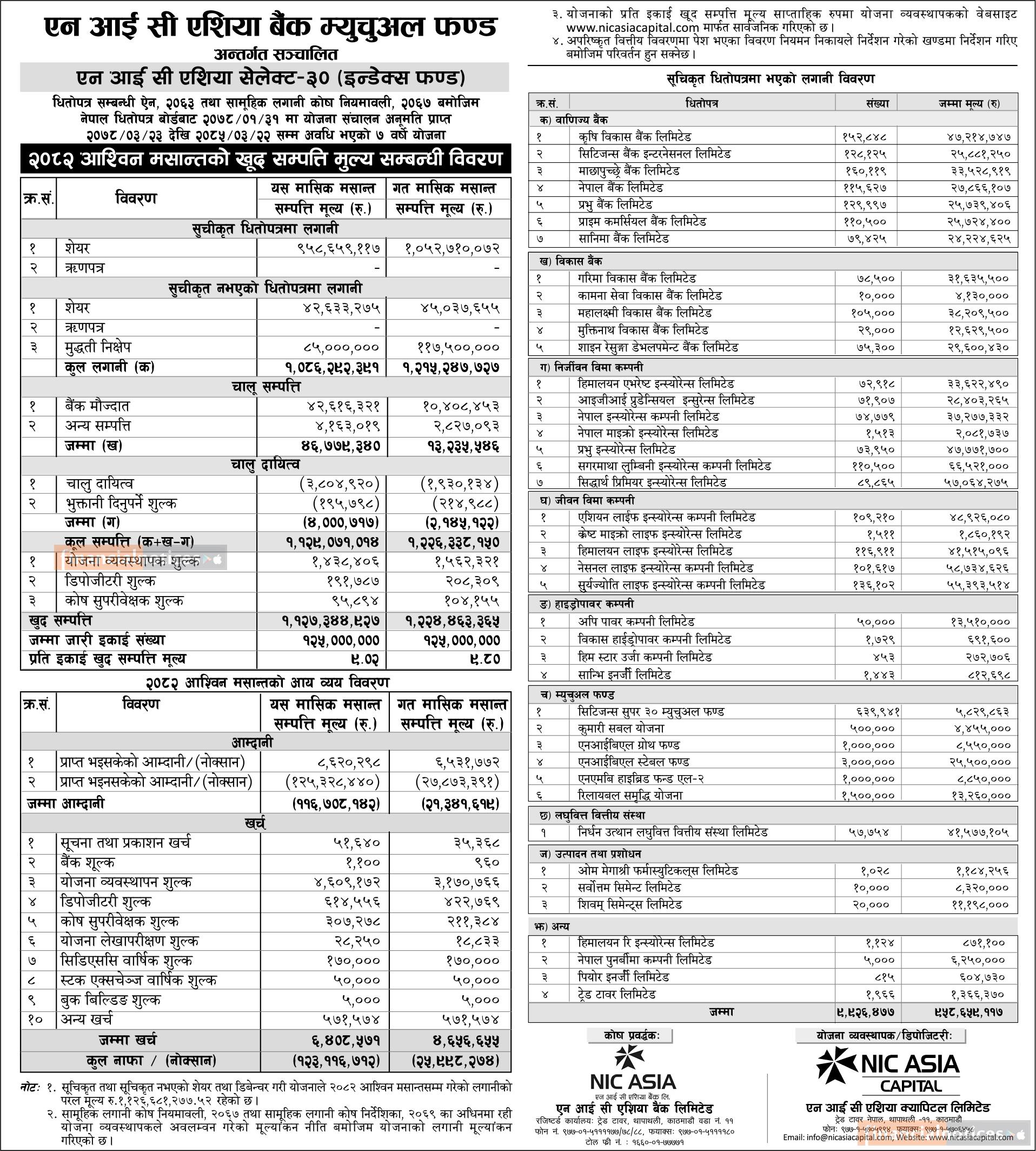 NIC Asia Capital has published "NIC Asia Select-30 (Index Fund)" Net Assets Value till Ashwin, 2082