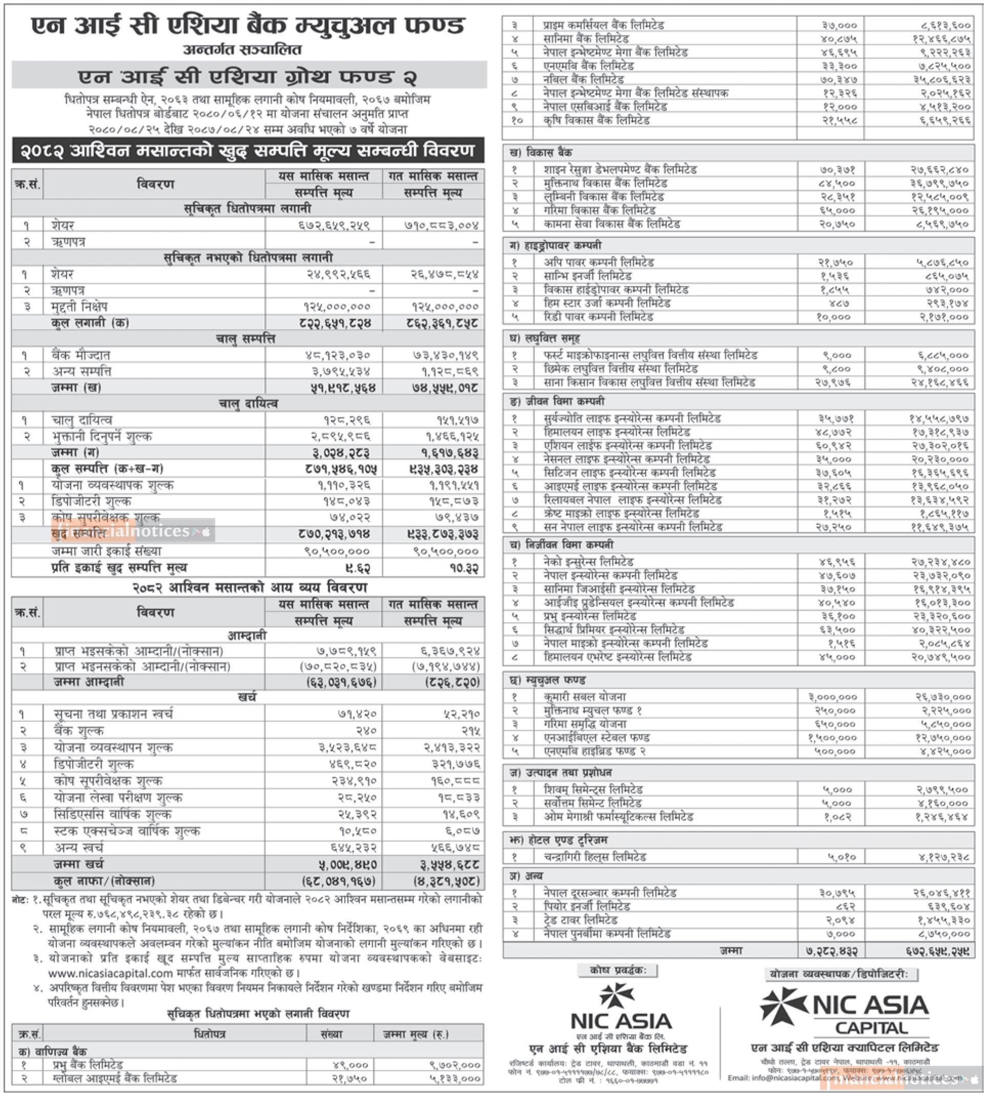 NIC Asia Capital has published "NIC Asia Growth Fund 2" Net Assets Value till Ashwin, 2082