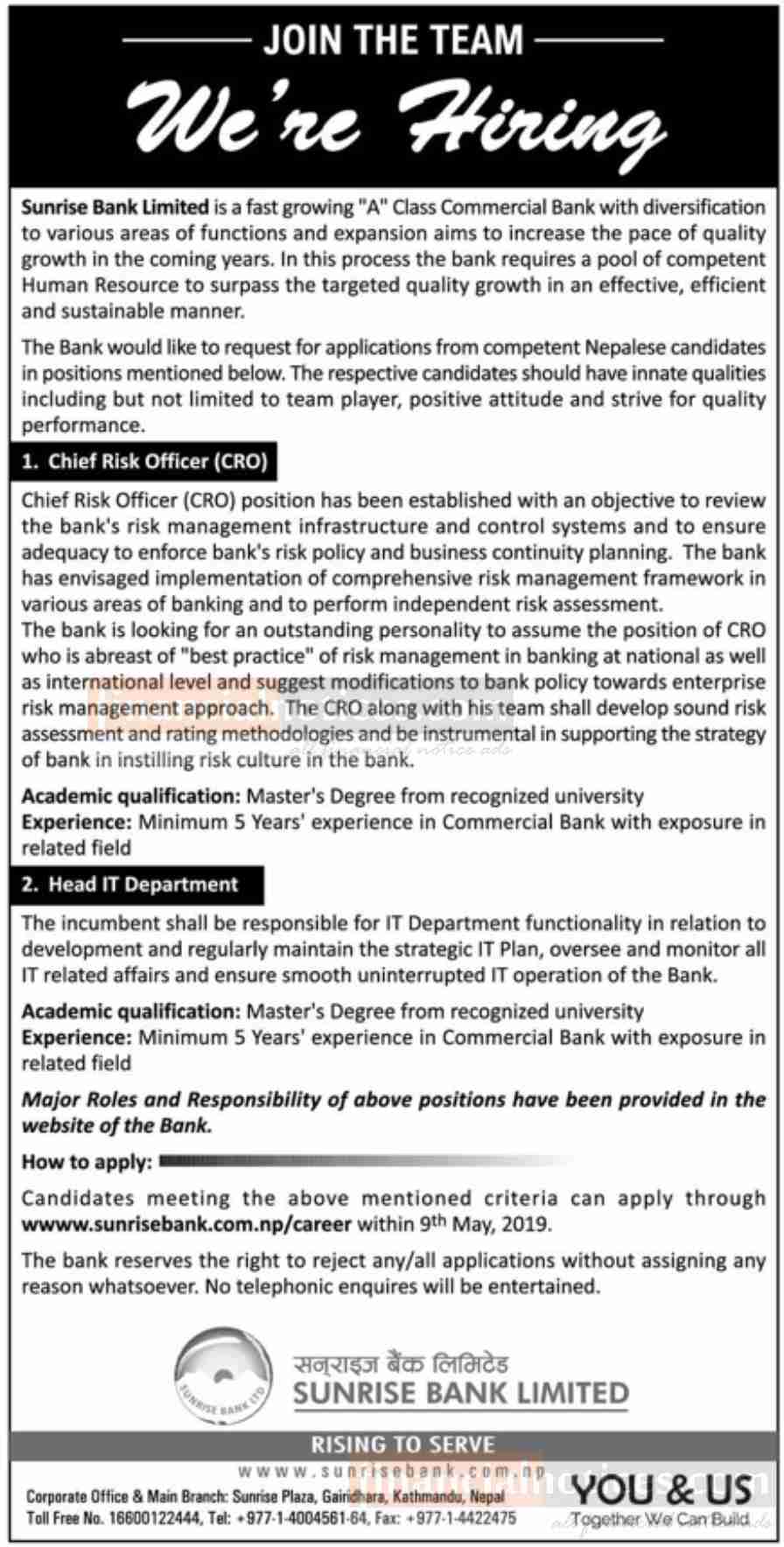 Published by Sunrise Bank Limited Kantipur Daily on 2076-1-12