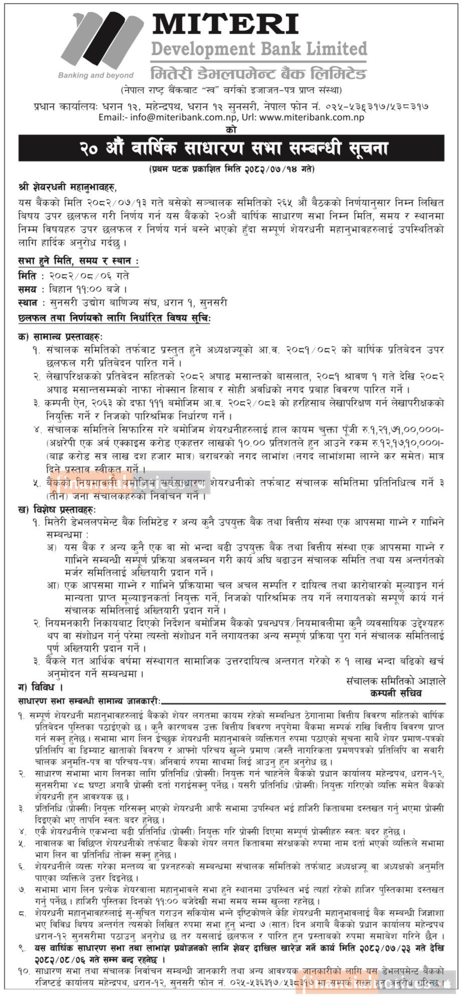 २० औं वार्षिक साधारण सभा सम्बन्धी सूचना -