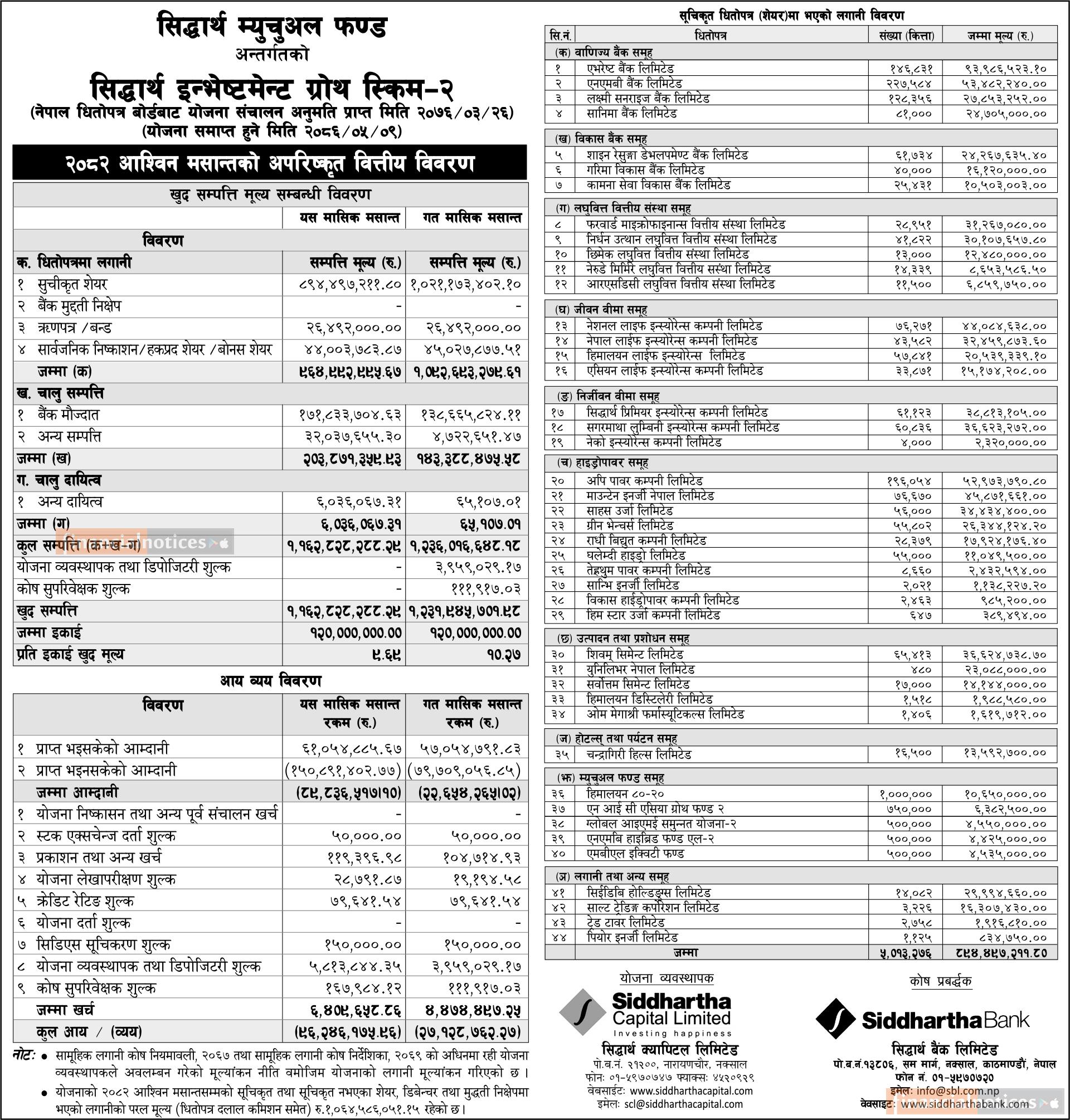Siddhartha Capital has published “Siddhartha Investment Growth Scheme - 2” NAV till Ashwin, 2082