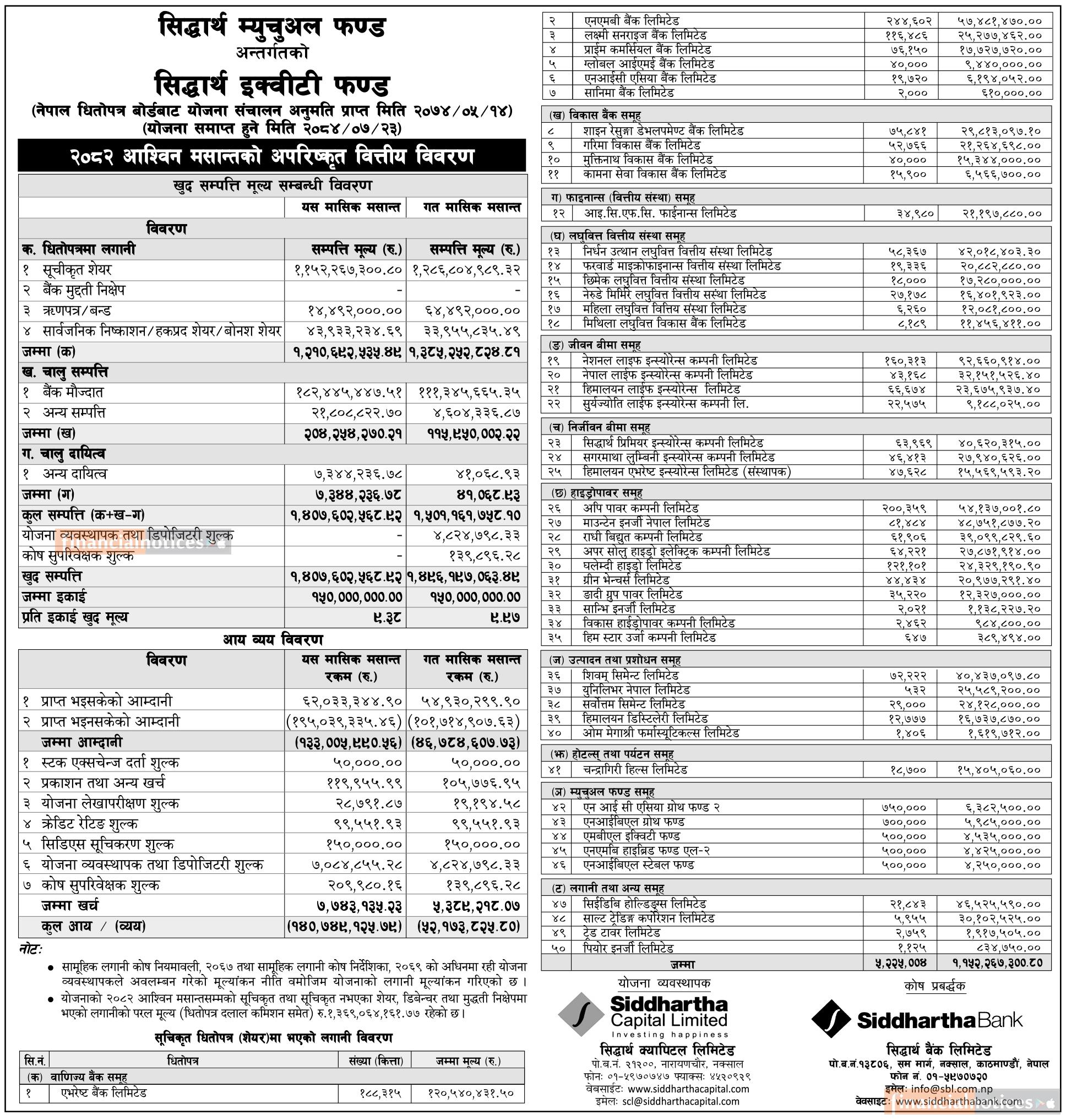 Siddhartha Capital has published “Siddhartha Equity Fund” Net Asset Value till Ashwin, 2082
