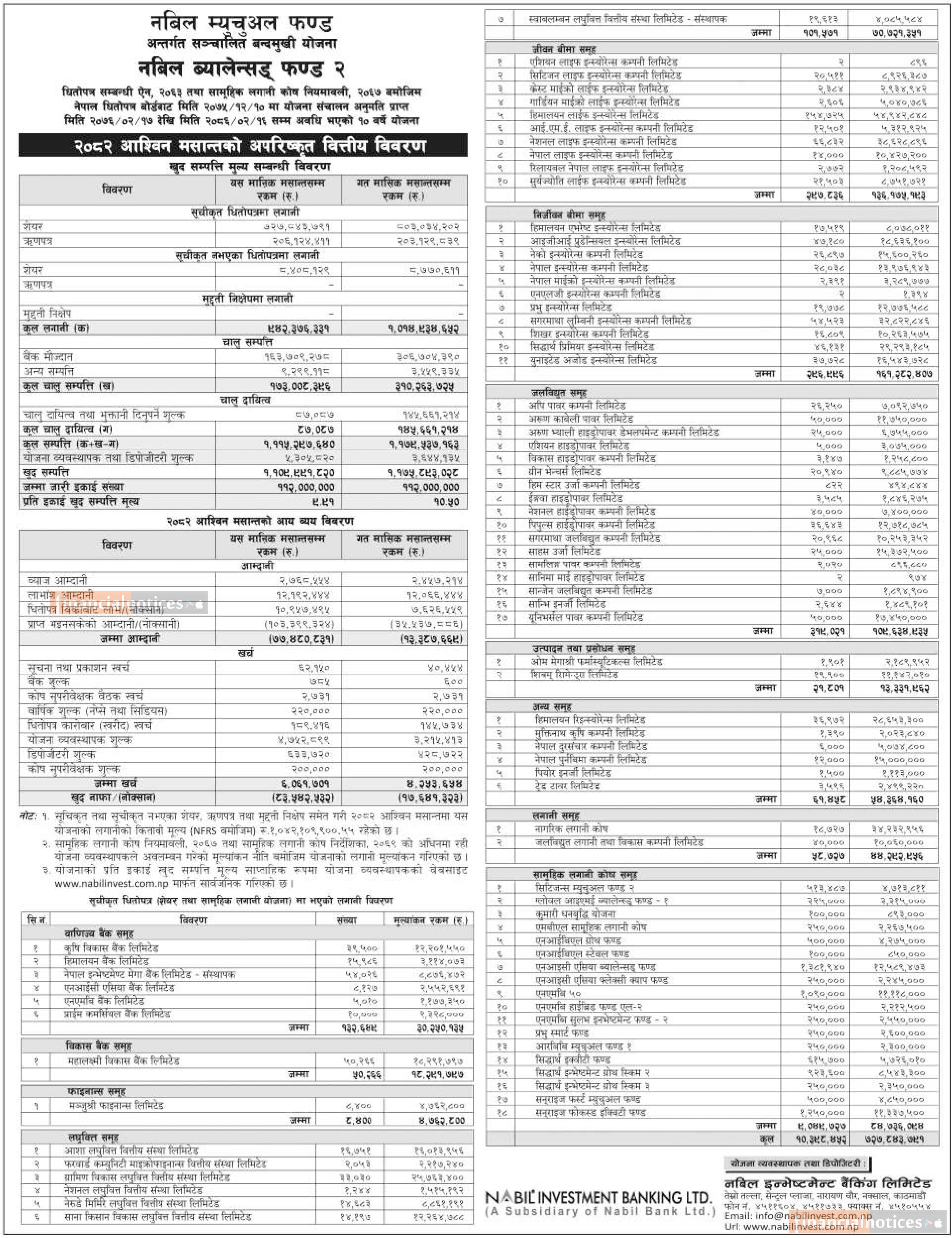 Nabil Investment Banking has published "Nabil Balanced Fund 2" NAV till Ashwin, 2082