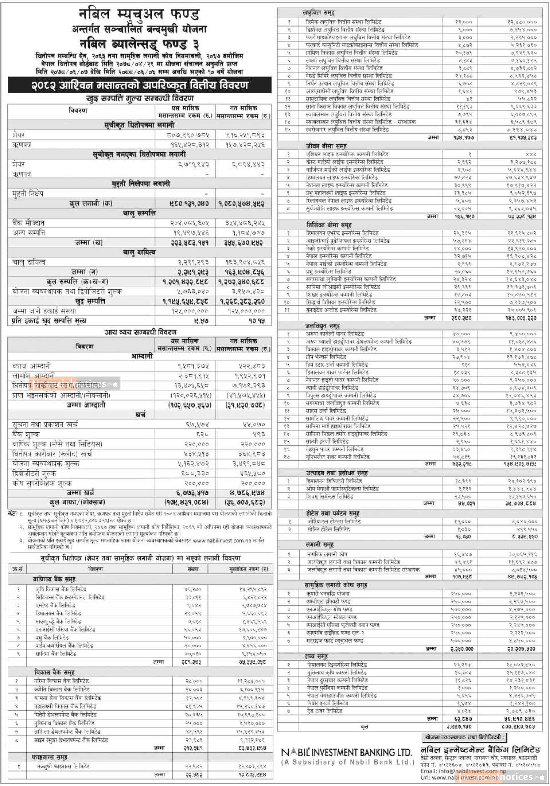 Nabil Investment Banking has published "Nabil Balanced Fund 3" NAV till Ashwin, 2082