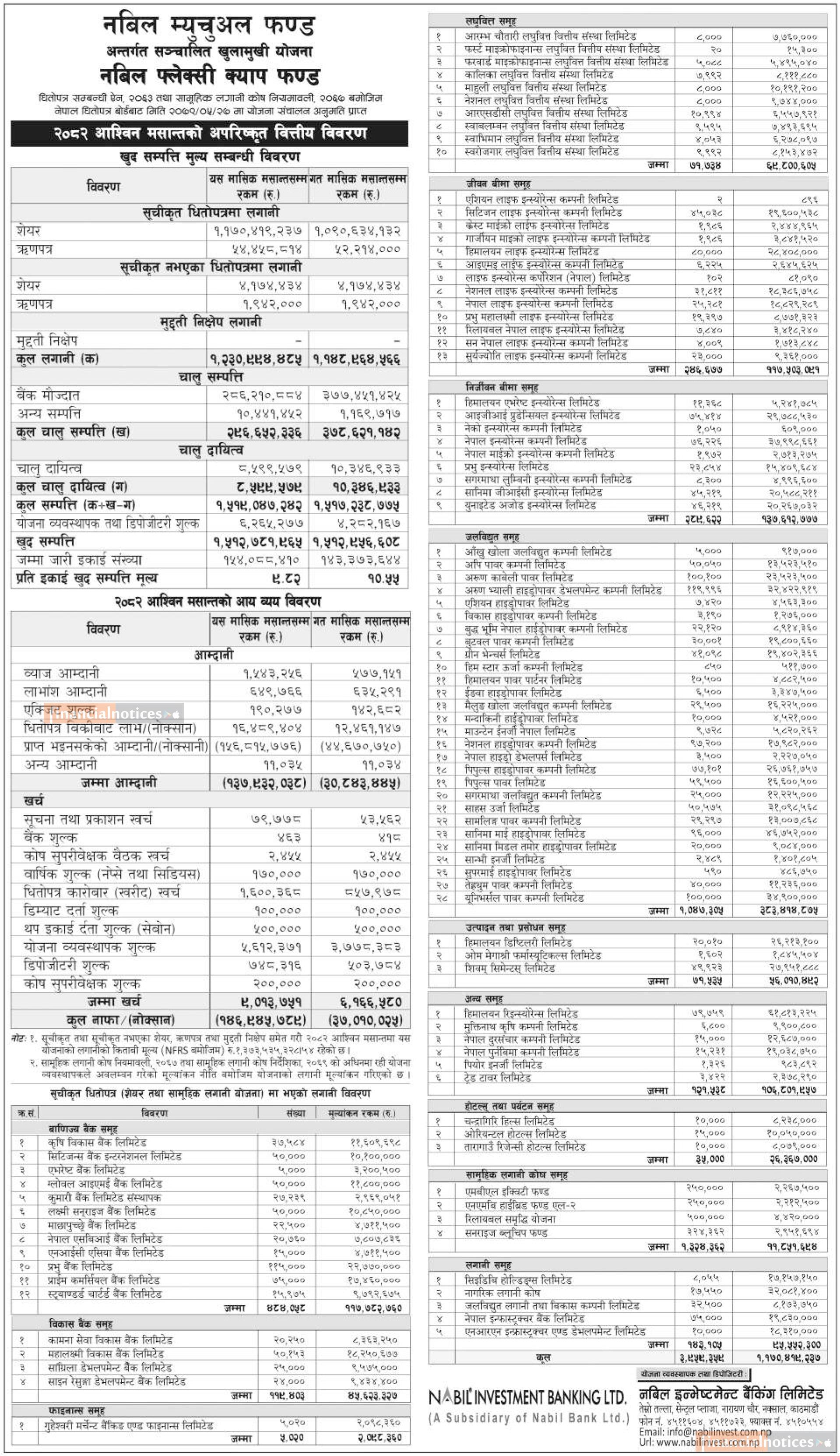 Nabil Investment Banking has published "Nabil Flexi Cap Fund" NAV till Ashwin, 2082