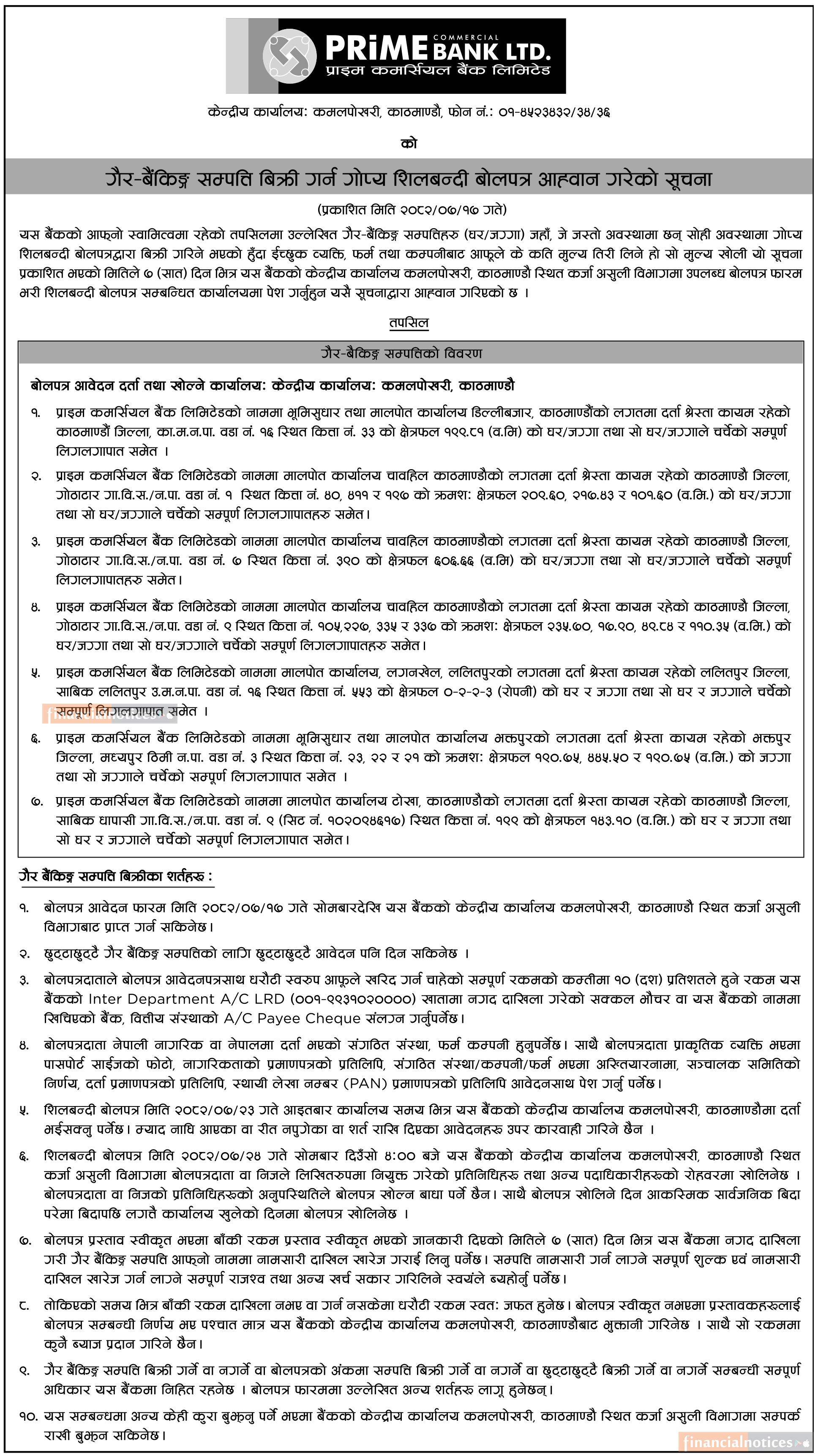 गैह्र बैंकिङ्ग सम्पत्ति बिक्री गर्न गोप्य शिलबन्दी बोलपत्र आव्हान गरेको सूचना