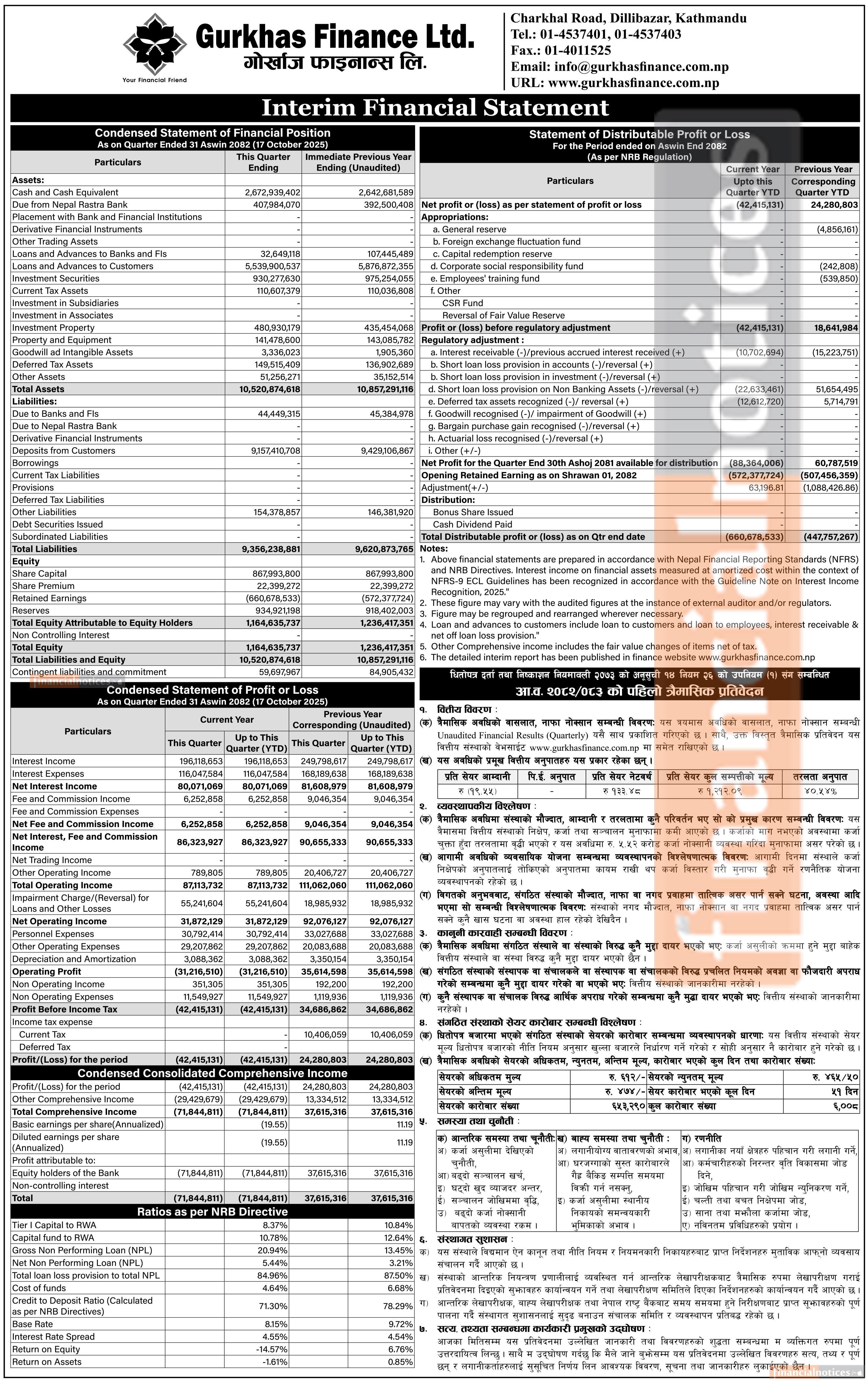 Gurkhas Finance has posted a net loss of Rs 42.41 million and published its 1st quarter