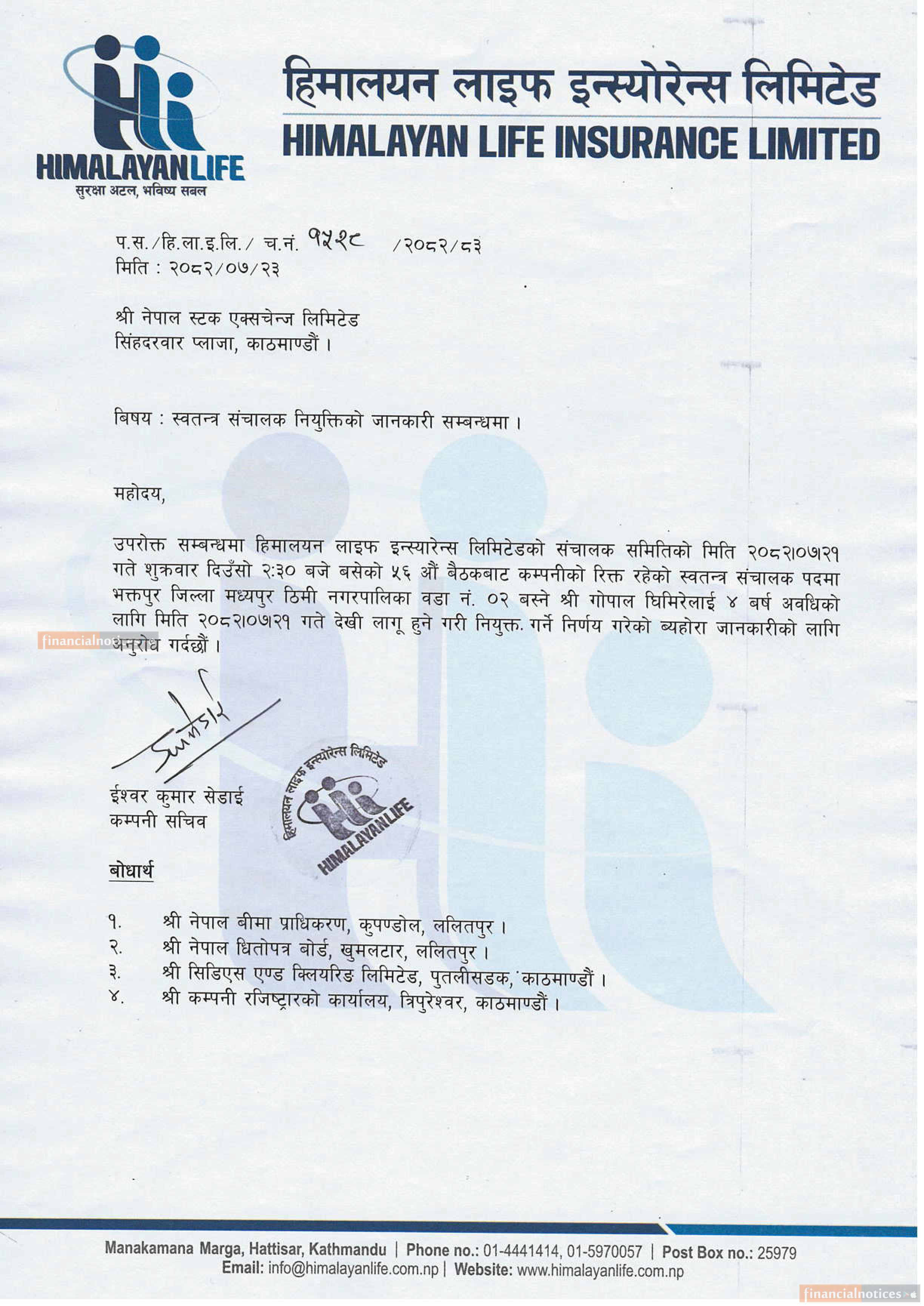Published by Himalayan Life Insurance Limited on 2082-7-23