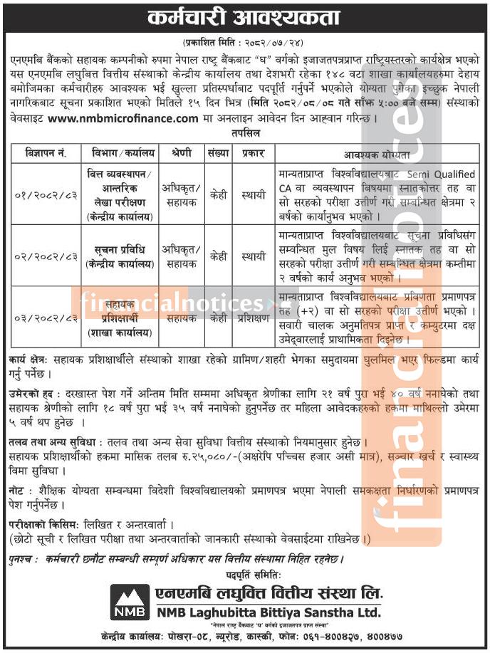 एनएमबि लघुवित्तमा कर्मचारी आवश्यकता सम्बन्धी सूचना