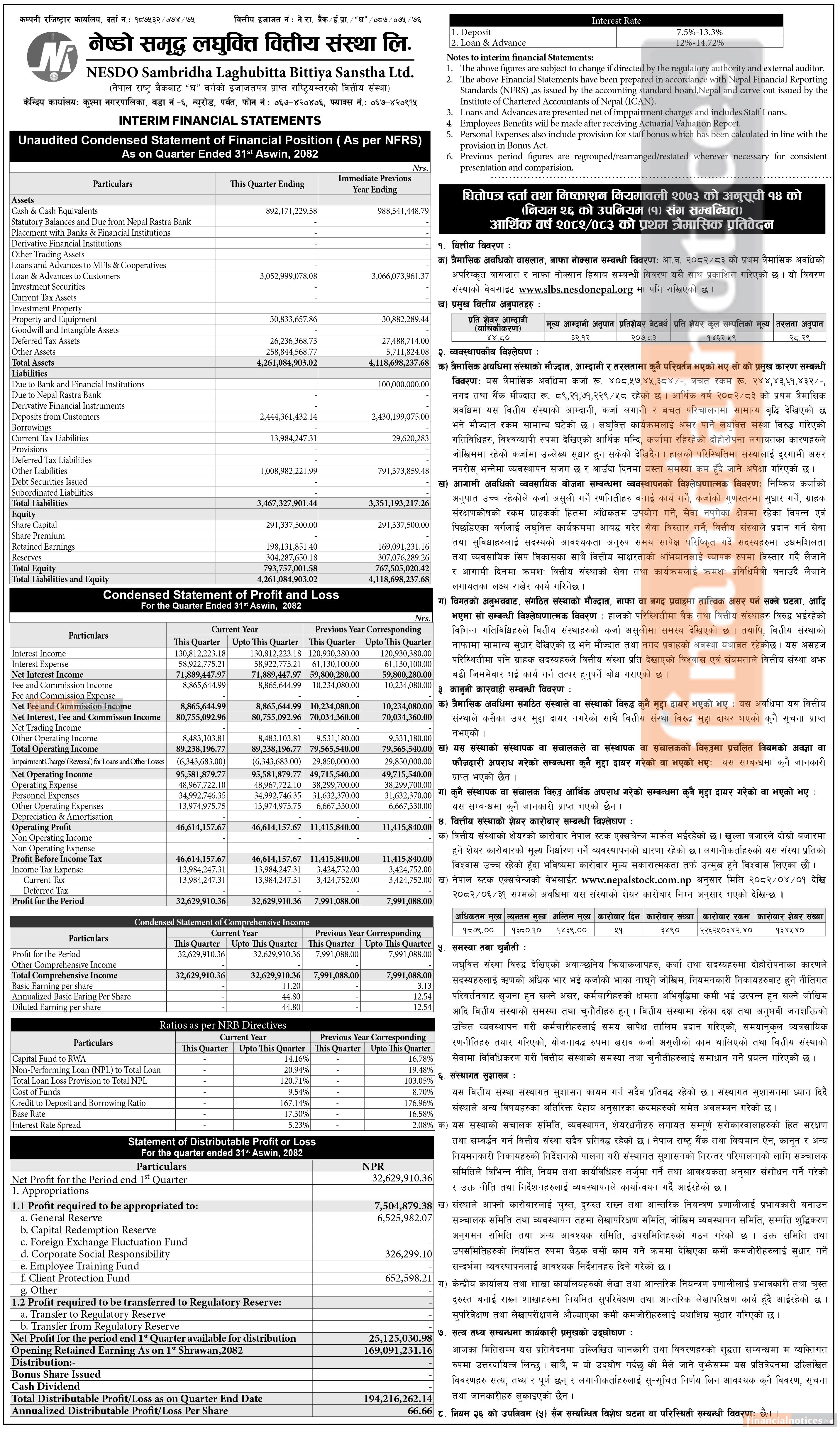 नेष्डो समृद्ध लघुवित्तको आर्थिक वर्ष २०८२/८३ मा खुद नाफा ३ करोड २६ लाख रुपैयाँ - Q1 Report -