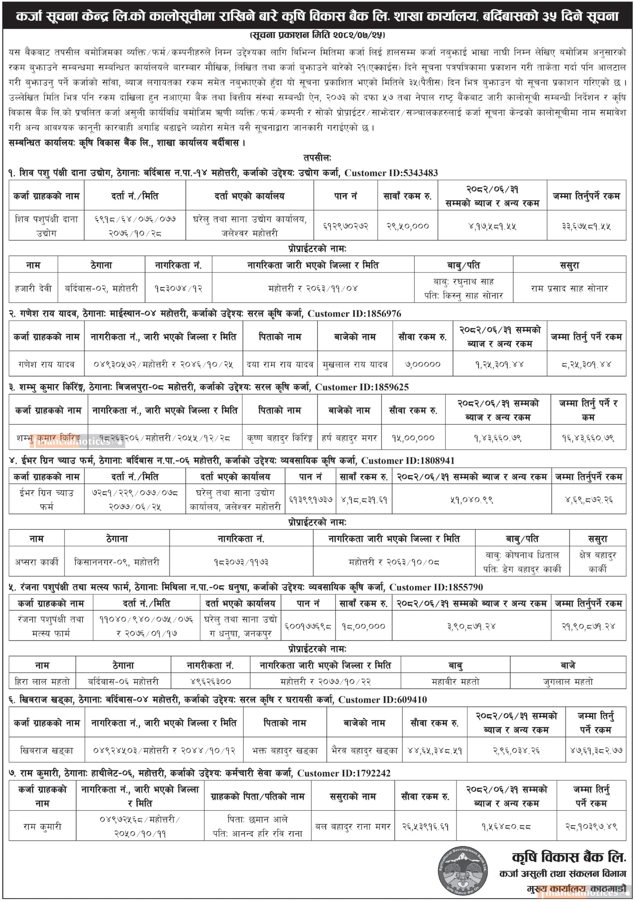कालो सूचीमा राखिने बारे जरुरी सूचना