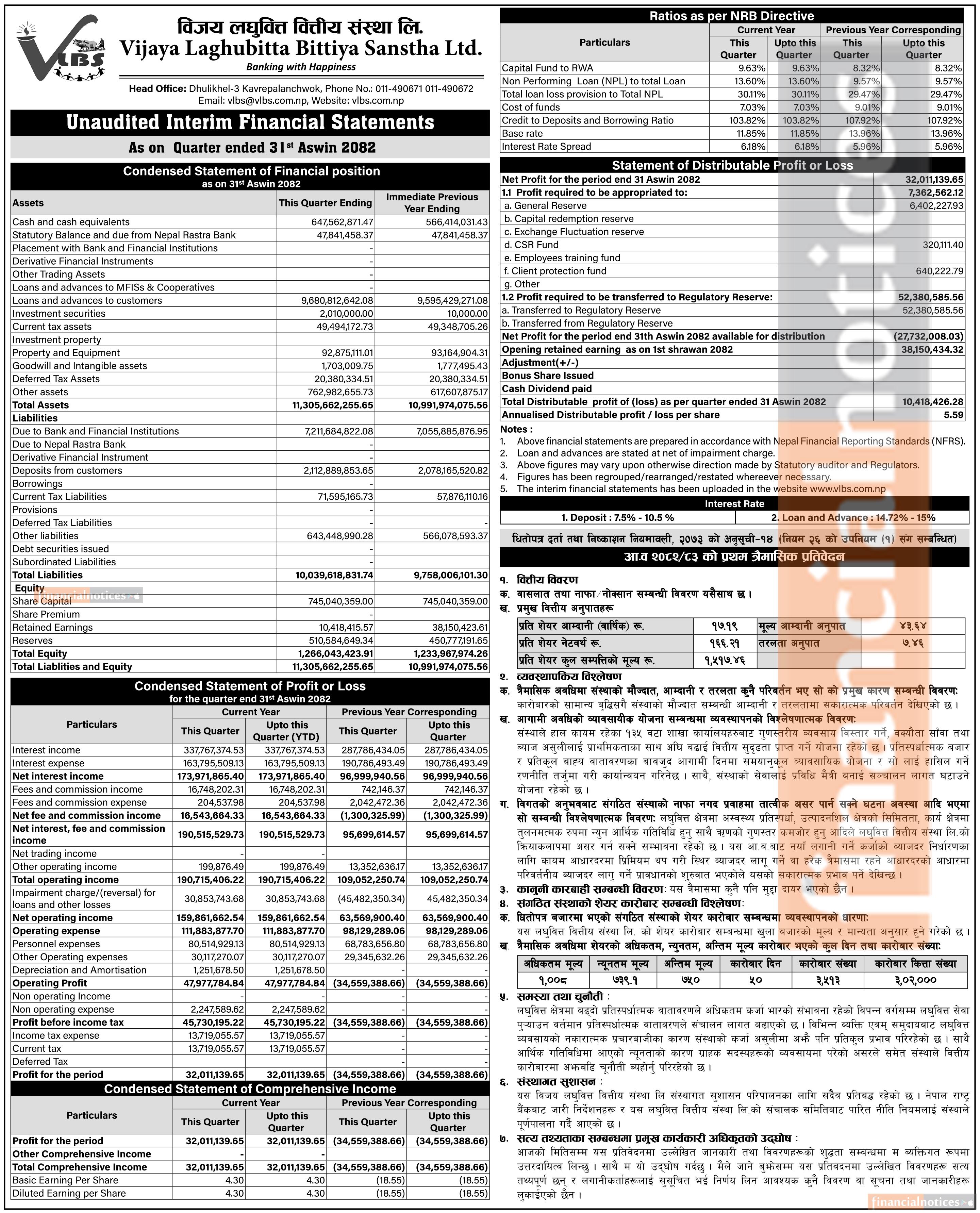 विजय लघुवित्तको चालु आर्थिक वर्ष २०८२/८३ को पहिलो त्रैमासमा खुद नाफा ३ करोड २० लाख रुपैयाँ