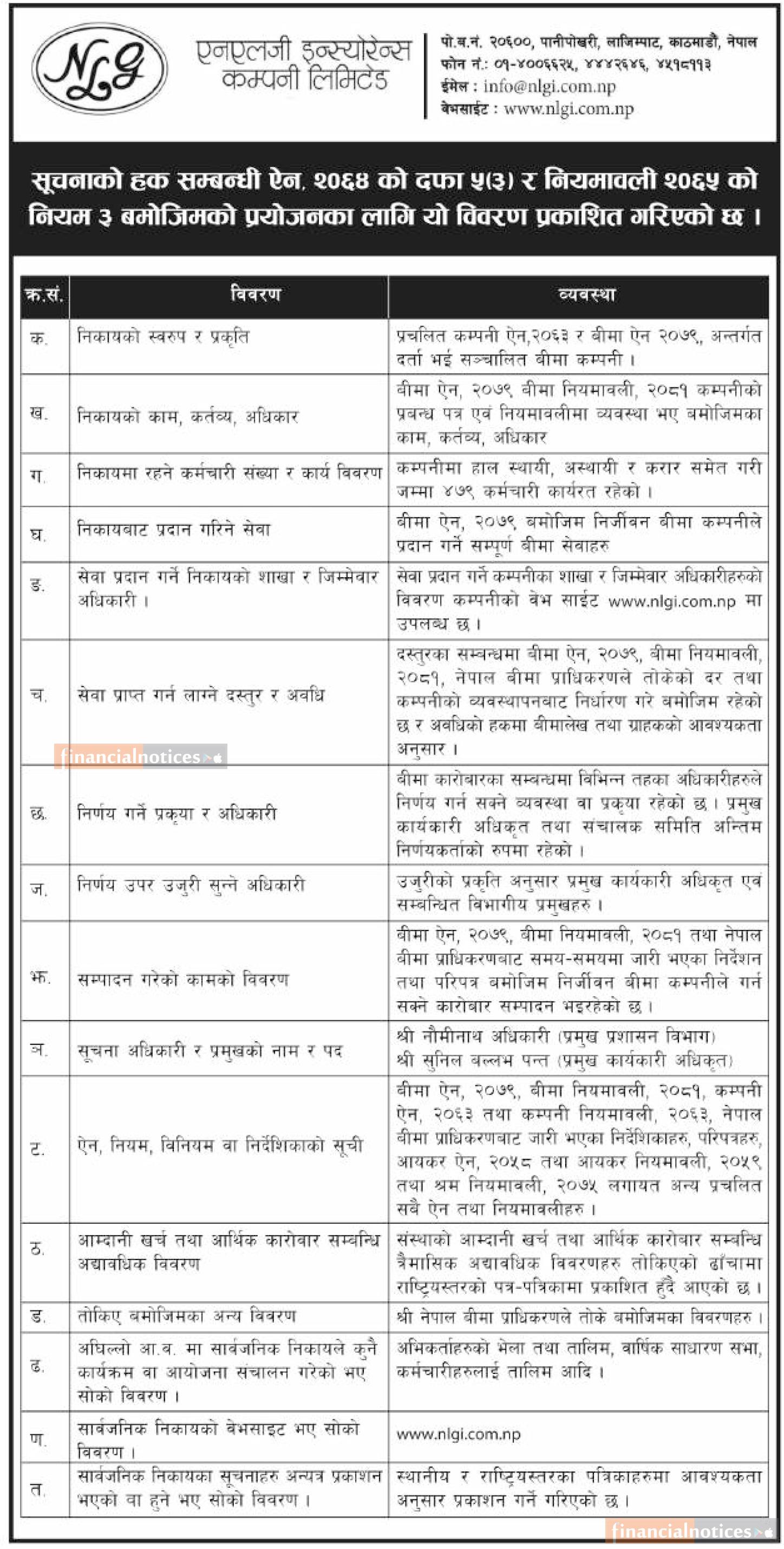 एनएलजी इन्सुरेन्सको सूचनाको हक सम्बन्धी सूचना