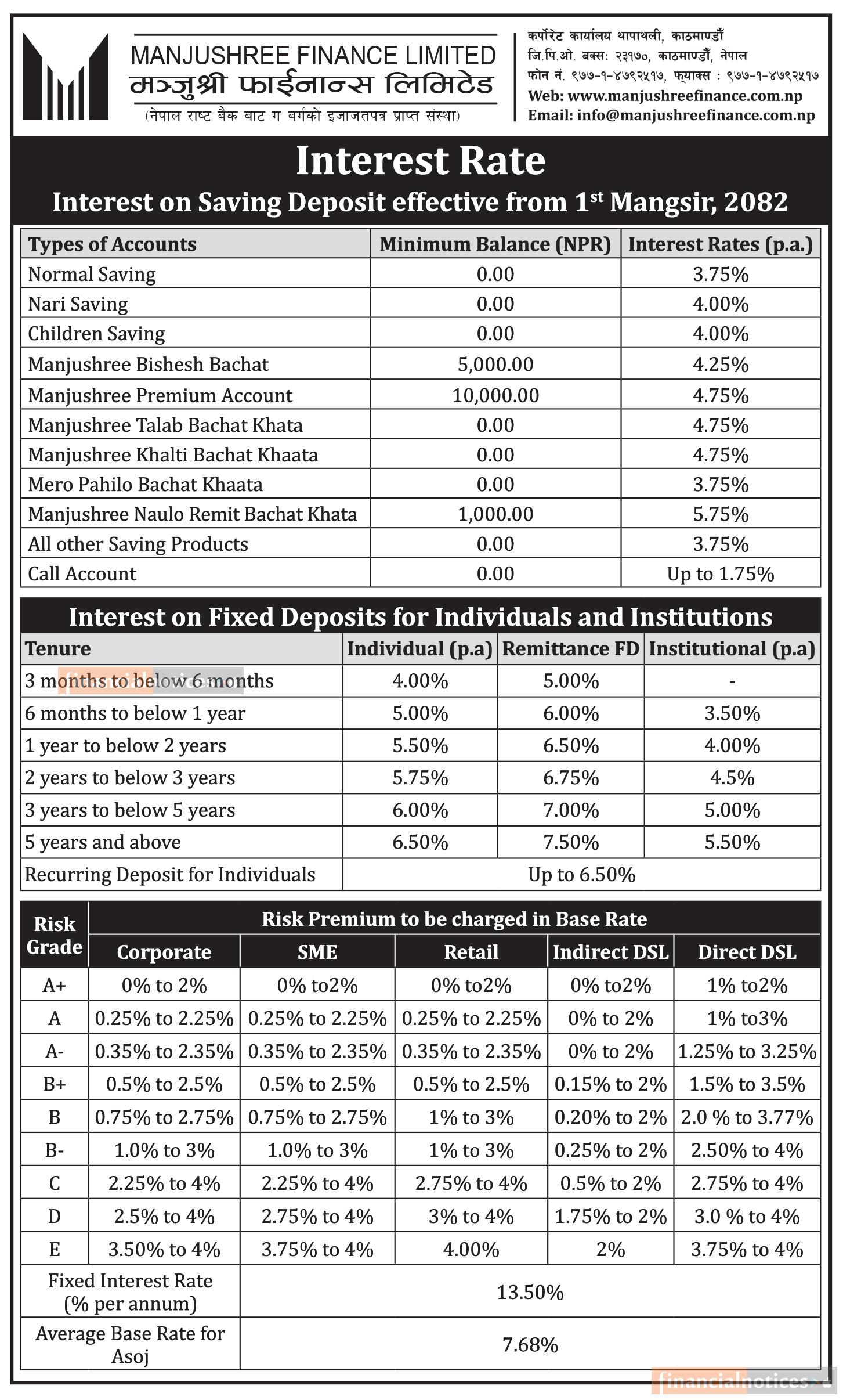 मन्जुश्री फाइनान्सको मंसिरदेखि नयाँ ब्याजदर लागू – कुन खातामा कति पाइन्छ ?