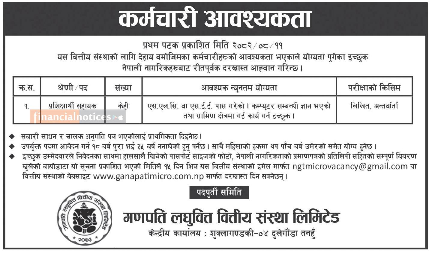 गणपति लघुवित्तमा कर्मचारी आवश्यकता सम्बन्धी सूचना