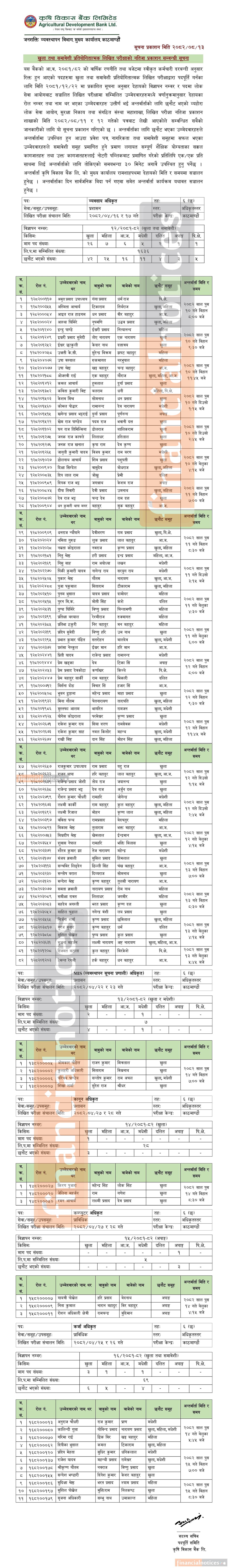 Agricultural Development Bank Limited (ADBL) has published the written examination results for Business Officer, MIS Officer, Legal Officer, Computer Officer and Credit Officer positions conducted through the Public Service Commission for FY 2081/82 under Open and Inclusive categories. ADBL has notified all successful candidates to attend the interview as per the official schedule.