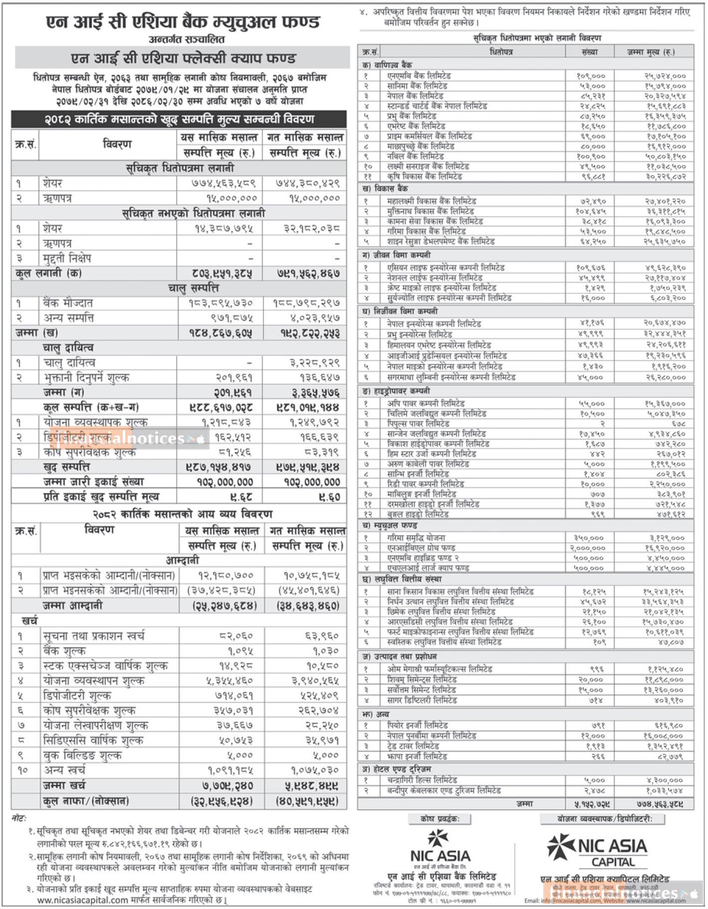 NIC Asia Capital has published "NIC ASIA Flexi Cap Fund"NAV till Kartik, 2082