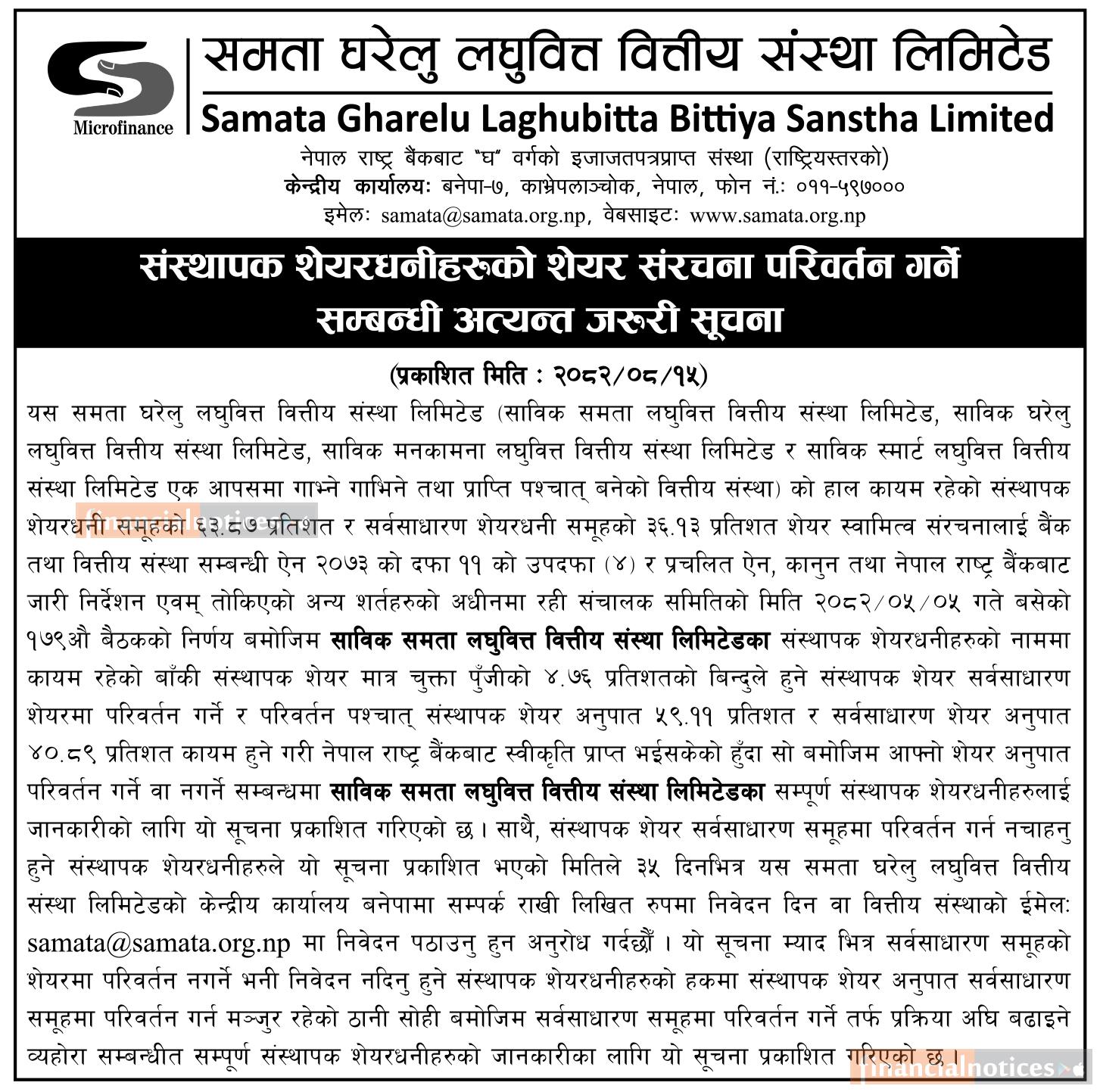 संस्थापक शेयरधनीहरूको शेयर संरचना परिवर्तन सम्बन्धी महत्वपूर्ण सूचना