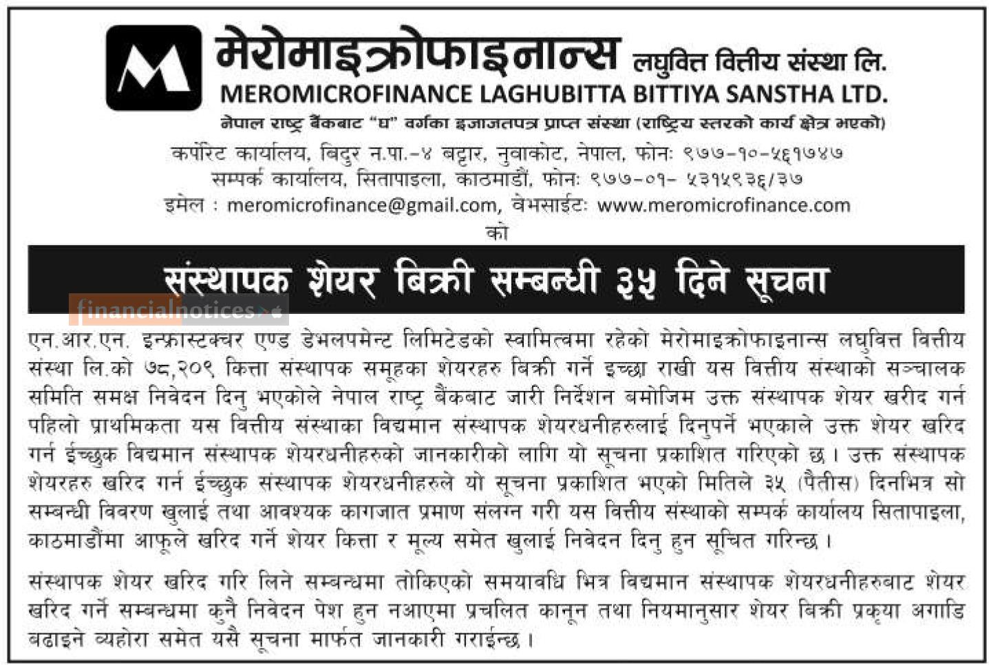 संस्थापक शेयर बिक्री सम्बन्धी ३५ दिने जरुरी सूचना
