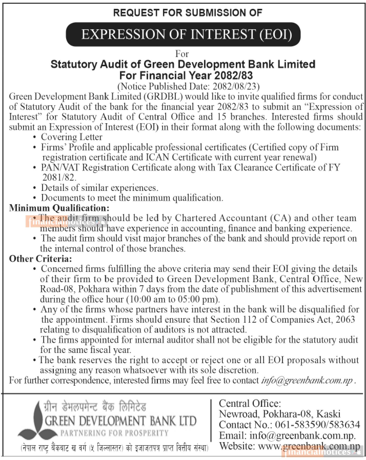 Published by Green Dev. Bank on 2082-8-24