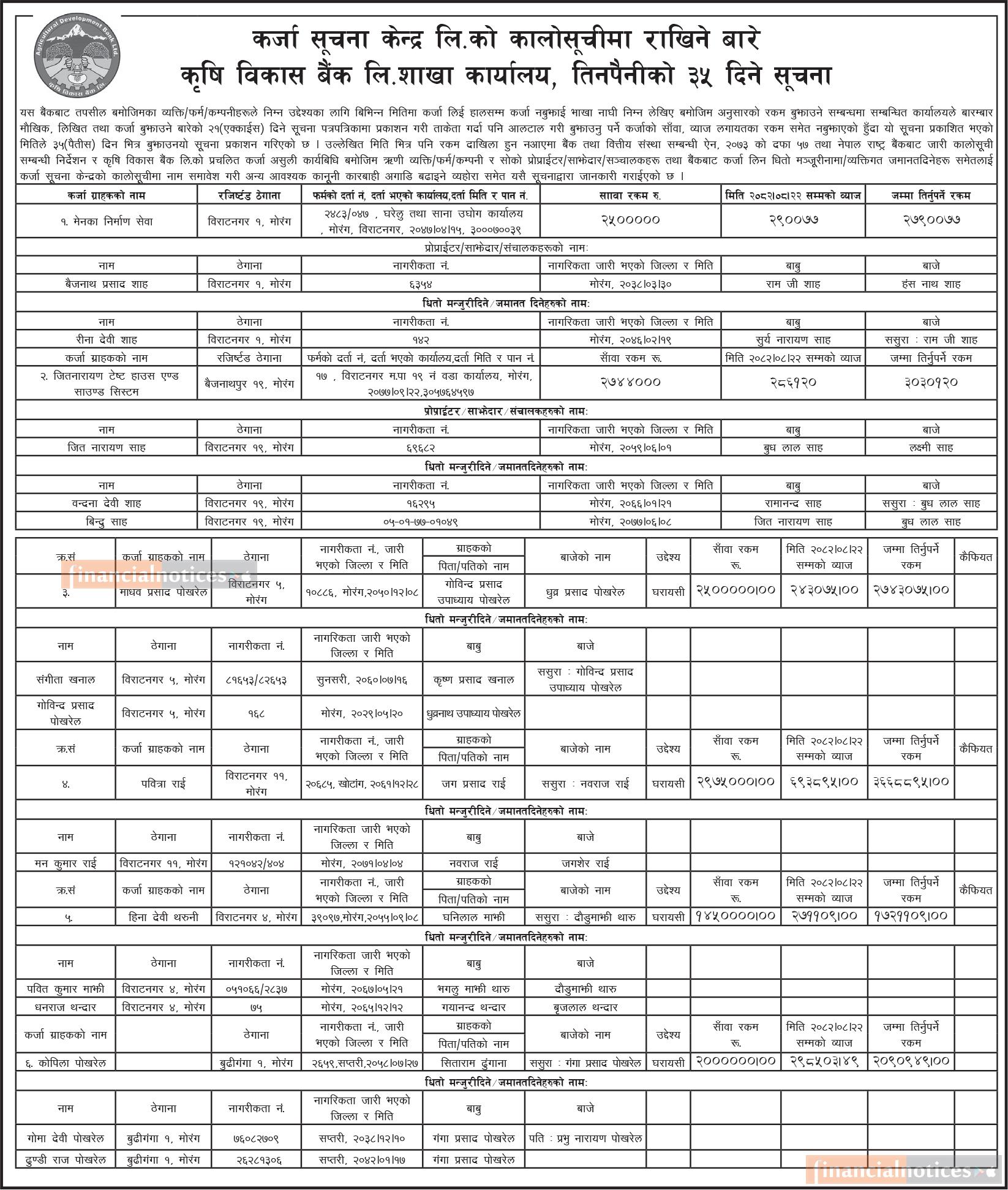 कालो सूचीमा राखिने बारेको कृषि विकास बैंकको जरुरी सूचना