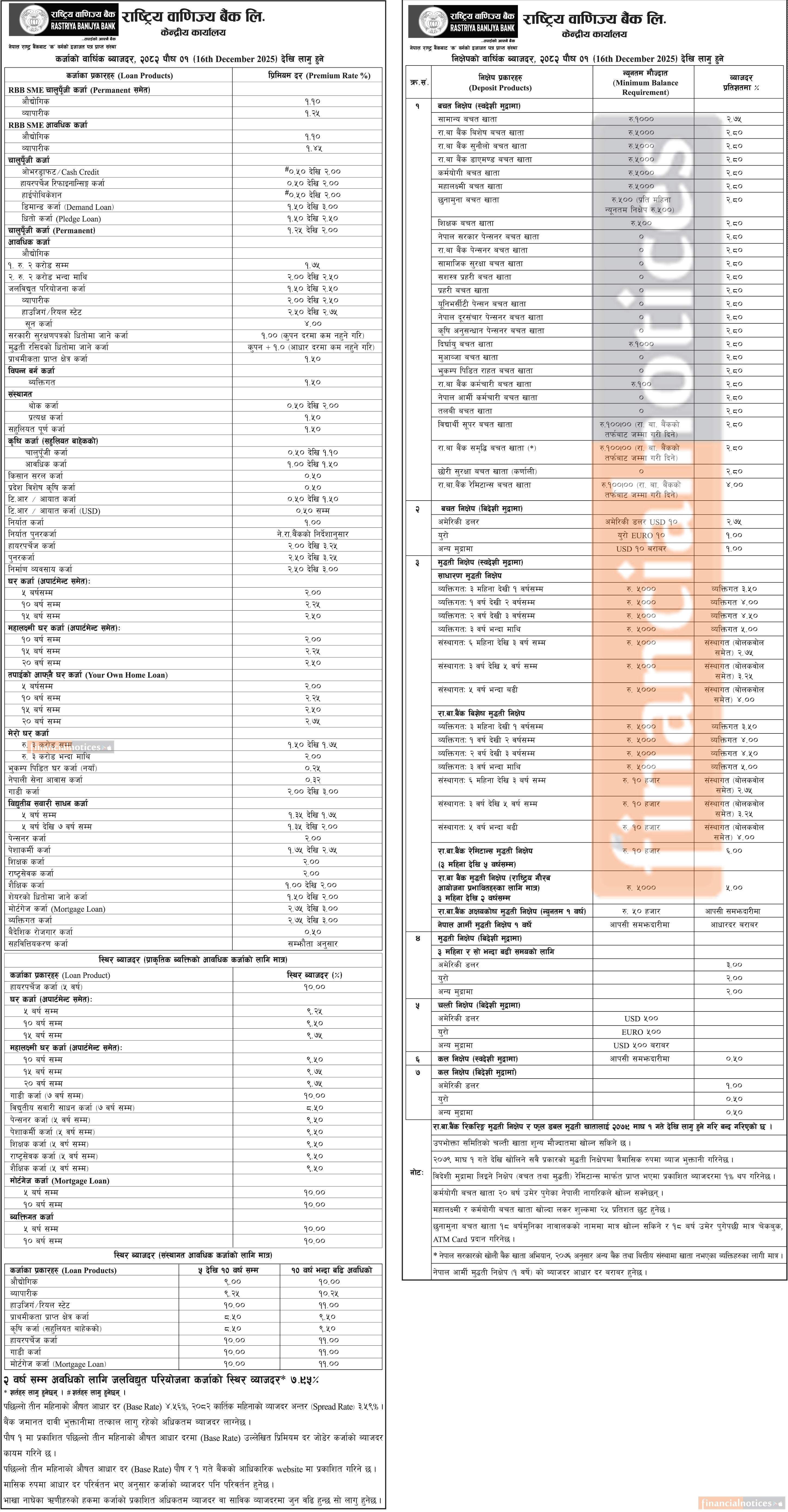 Rastriya Banijya Bank Limited Publishes New Interest Rates Effective from Poush 2082 -