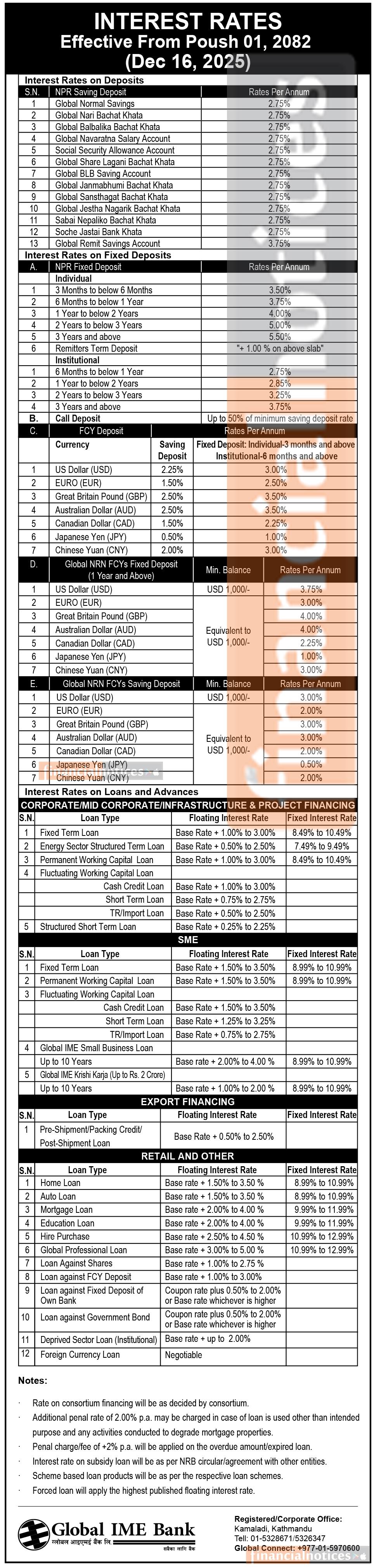 Global IME Bank Limited Publishes New Interest Rates Effective from Poush 2082 -