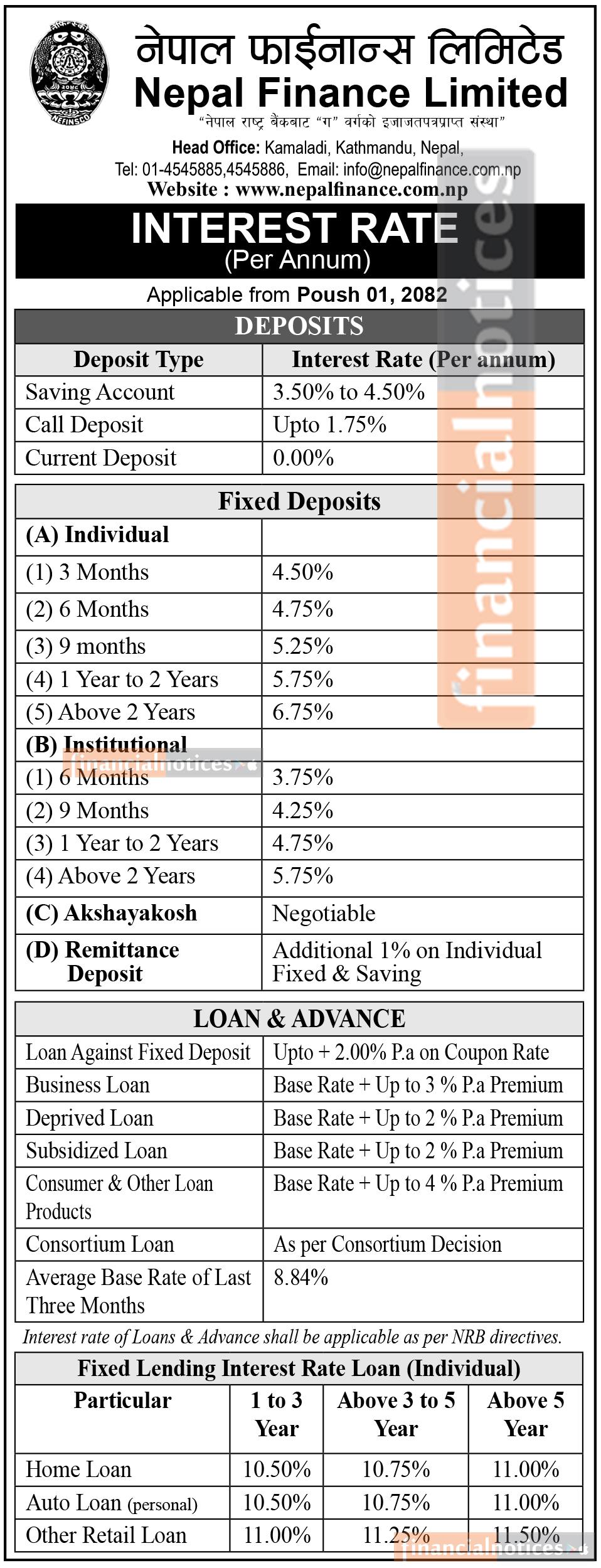 फाइनान्सको नयाँ ब्याजदर सार्वजनिक सम्बन्धी सूचना - Interest Rates -