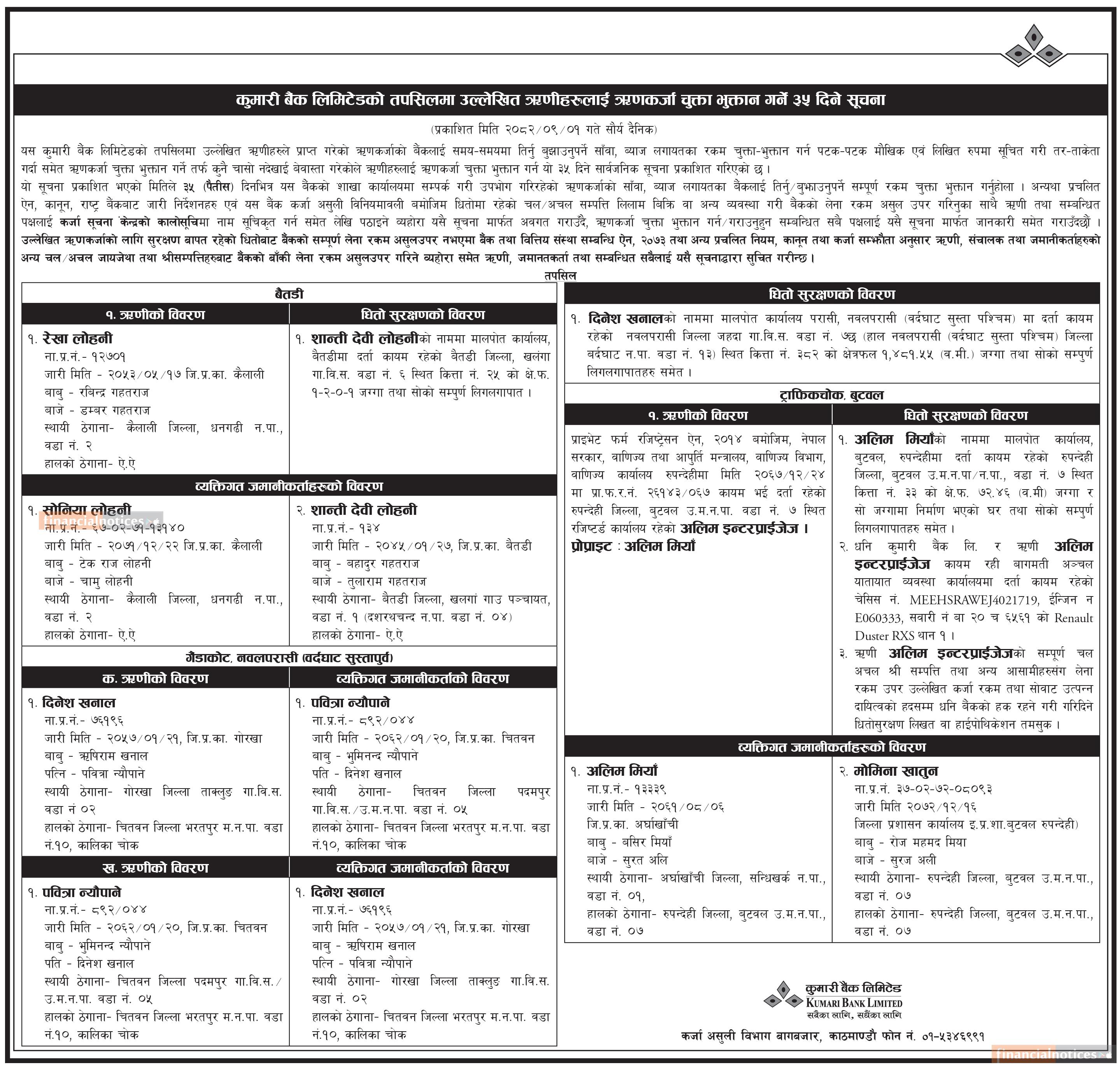 Published by Kumari Bank Ltd (KBL) on 2082-9-1