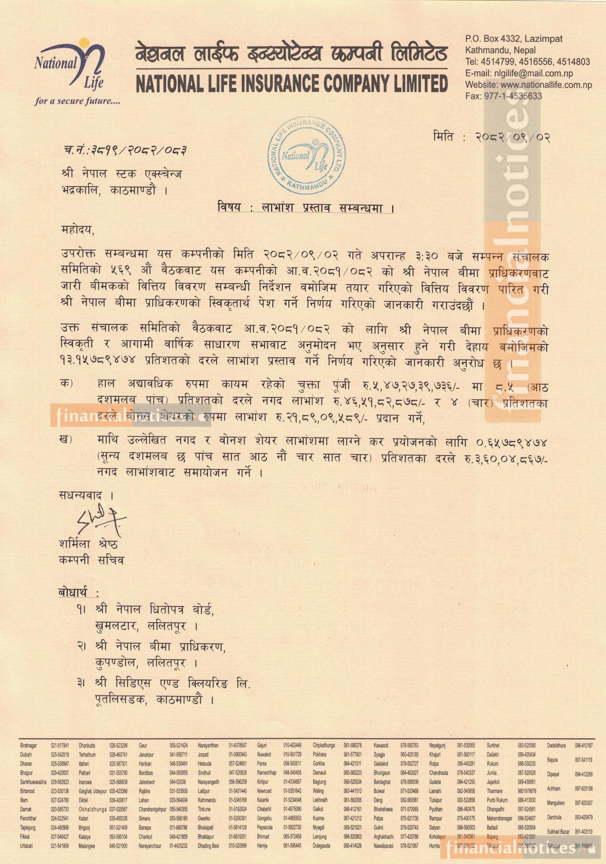 नेसनल लाइफ इन्स्योरेन्सको लाभांस घोषणा सम्बन्धी सूचना