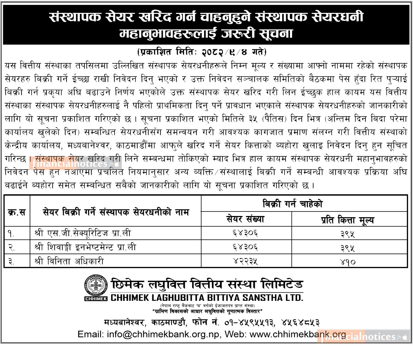 संस्थापक शेयर खरिद गर्न चाहानुहुने संस्थापक शेयरधनीहरुलाई जरुरी सूचना