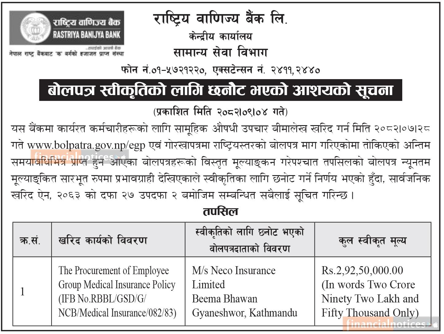 बोलपत्र स्वीकृतको लागि छनौट भएको आशयको सूचना
