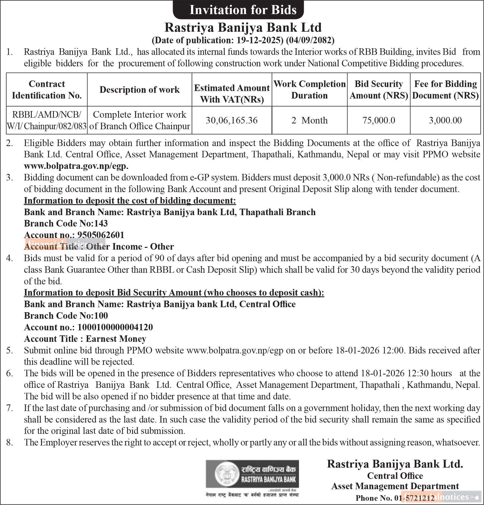 Kumari Bank Auction Notice for Non-Banking Assets at Mahendranagar, Kanchanpur -