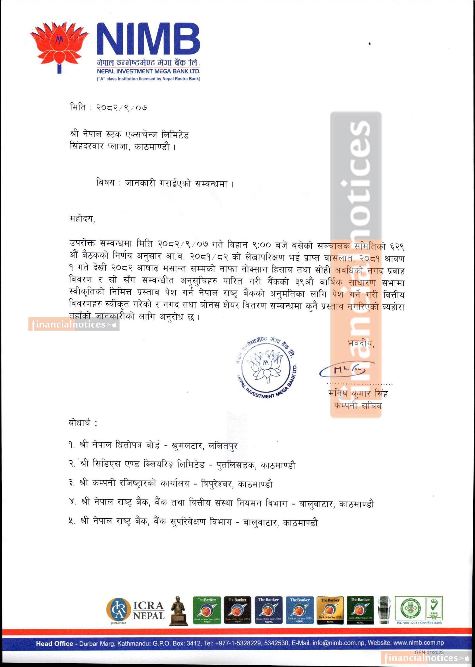 नेपाल इन्भेष्टमेन्ट मेगा बैंकले शेयरधनीहरुलाई लाभांश वितरण नगर्ने सम्बन्धी सूचना