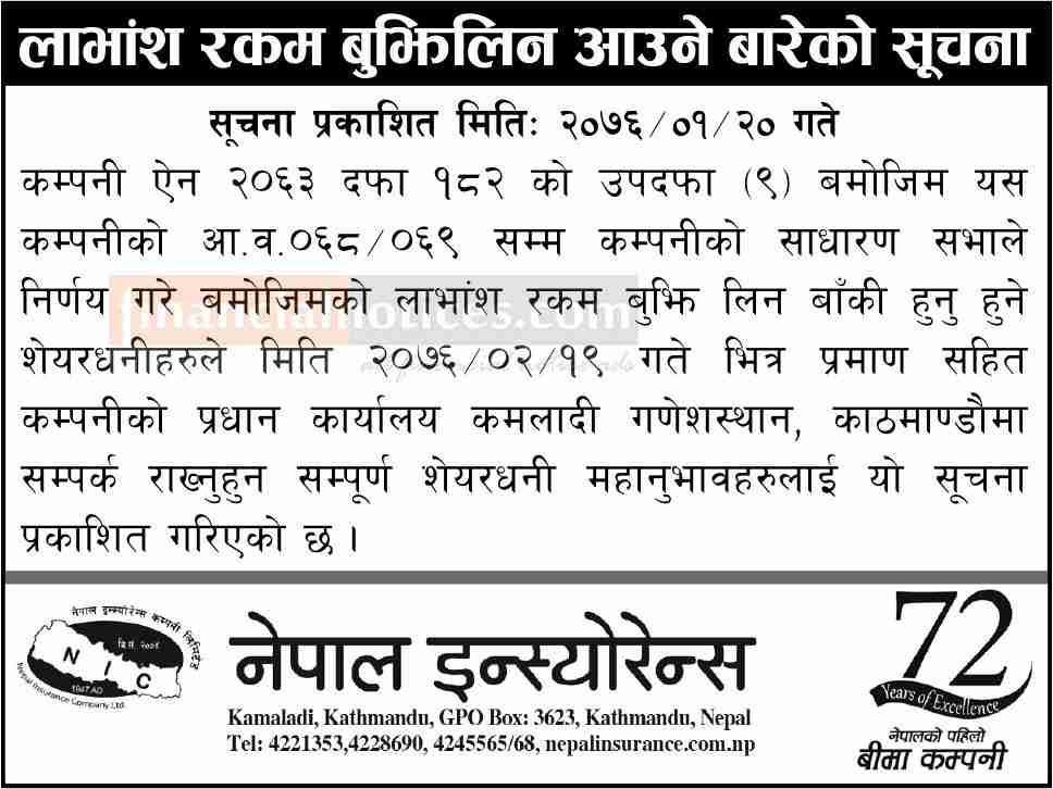 Published by Nepal Insurance Company Abhiyan News Paper on 2076-1-20