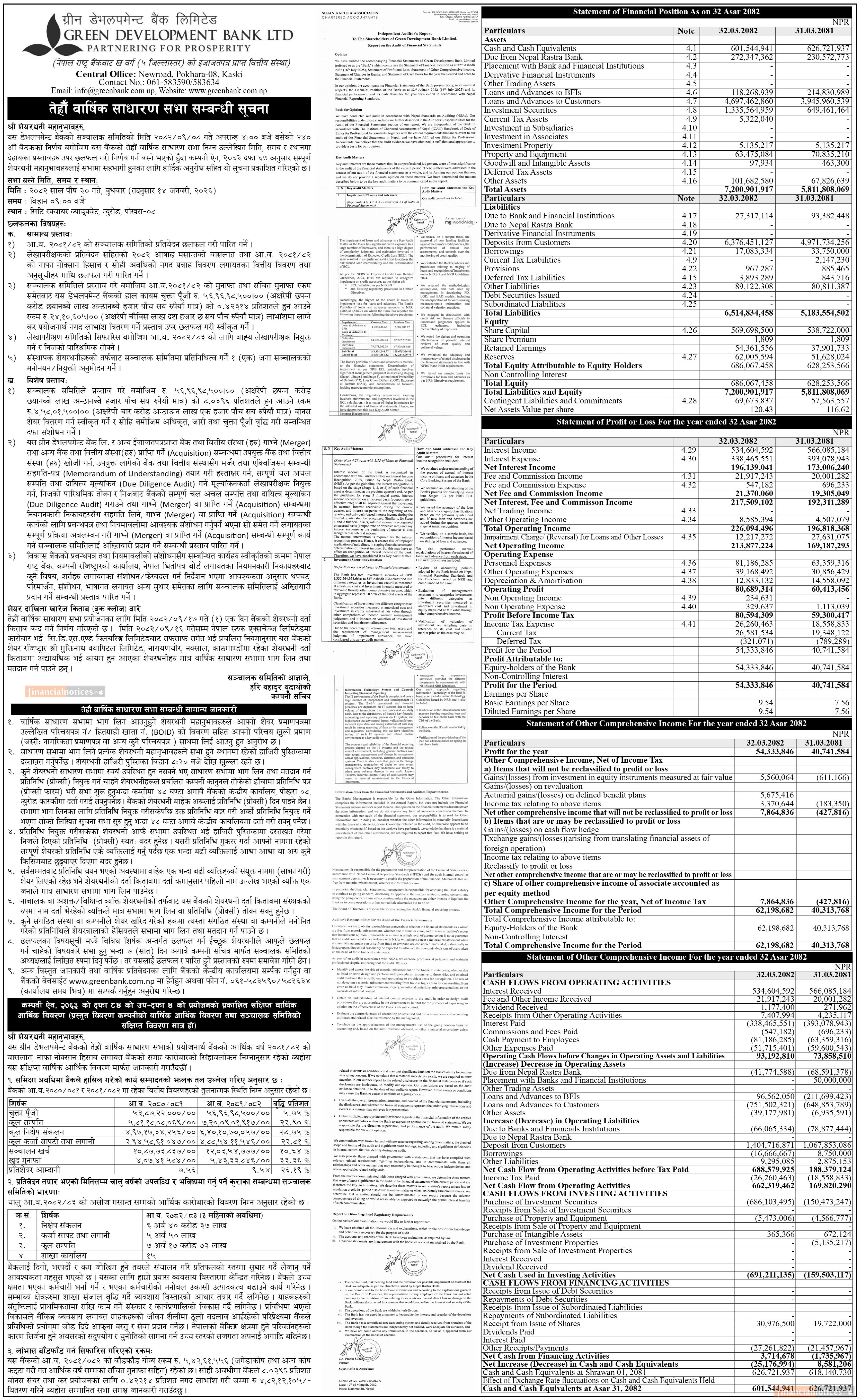 ग्रीन डेभलपमेन्ट बैंकको तेह्रौँ वार्षिक साधारण सभा सम्बन्धी सूचना