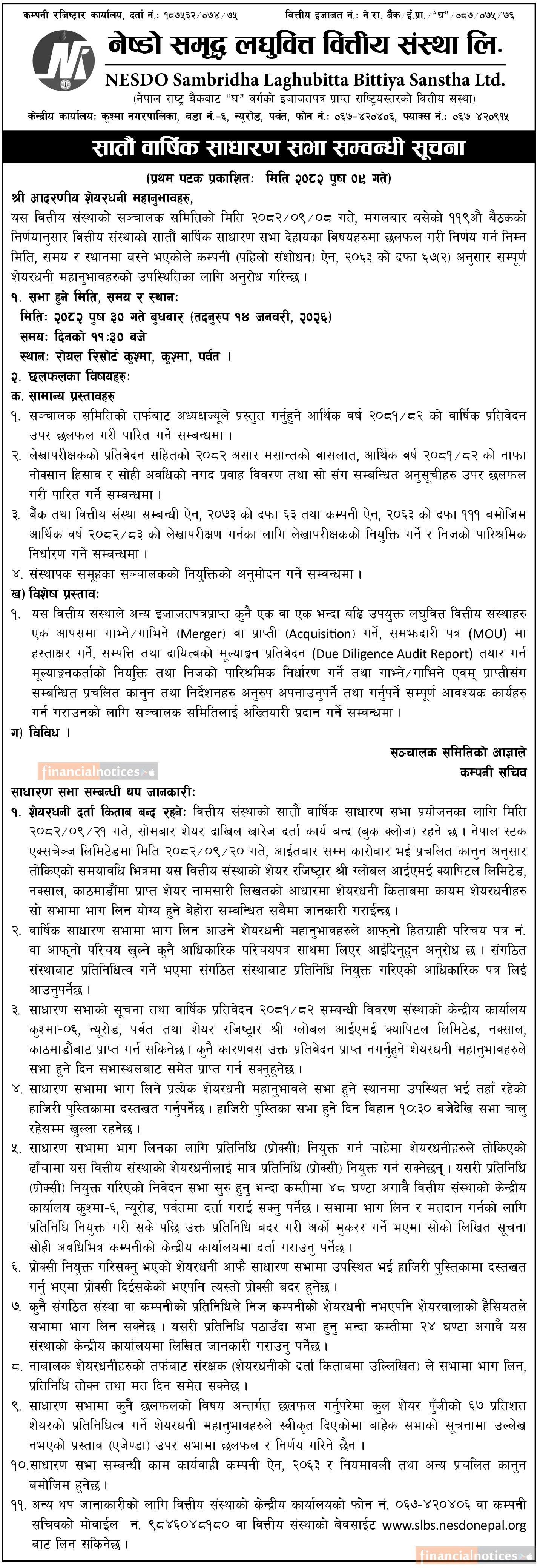 सातौँ वार्षिक साधारण सभा सम्बन्धी सूचना