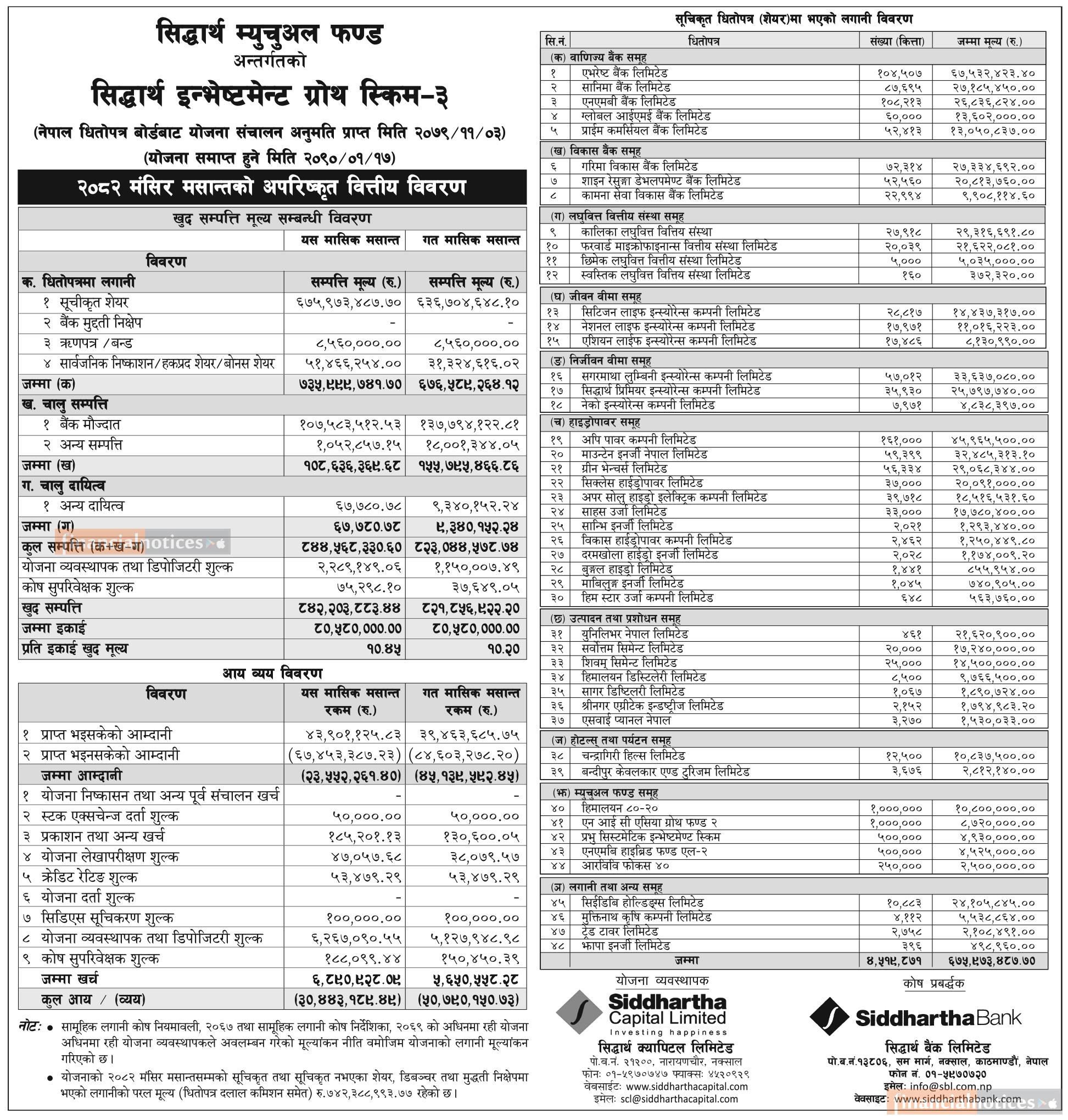 Siddhartha Capital has published “Siddhartha Investment Growth Scheme - 3” NAV till Mangsir, 2082