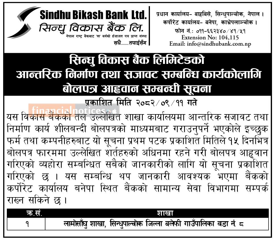 आन्तरिक निर्माण तथा सजावट सम्बन्धी कार्यको लागि बोलपत्र आव्हान सम्बन्धी सूचना