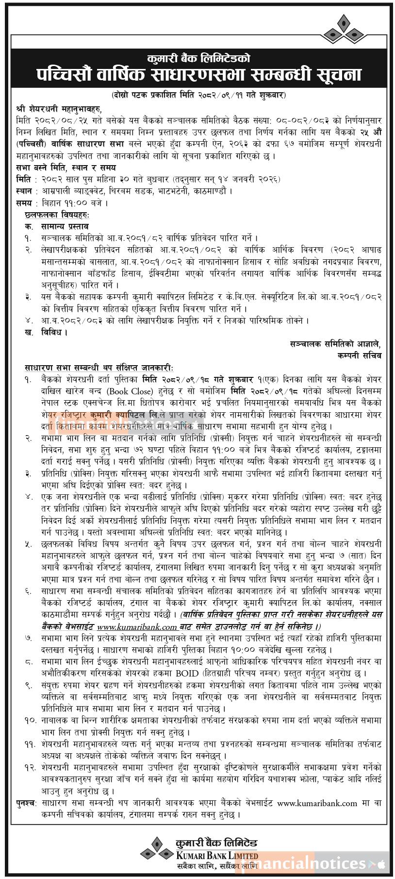 Published by Kumari Bank Ltd (KBL) on 2082-9-11
