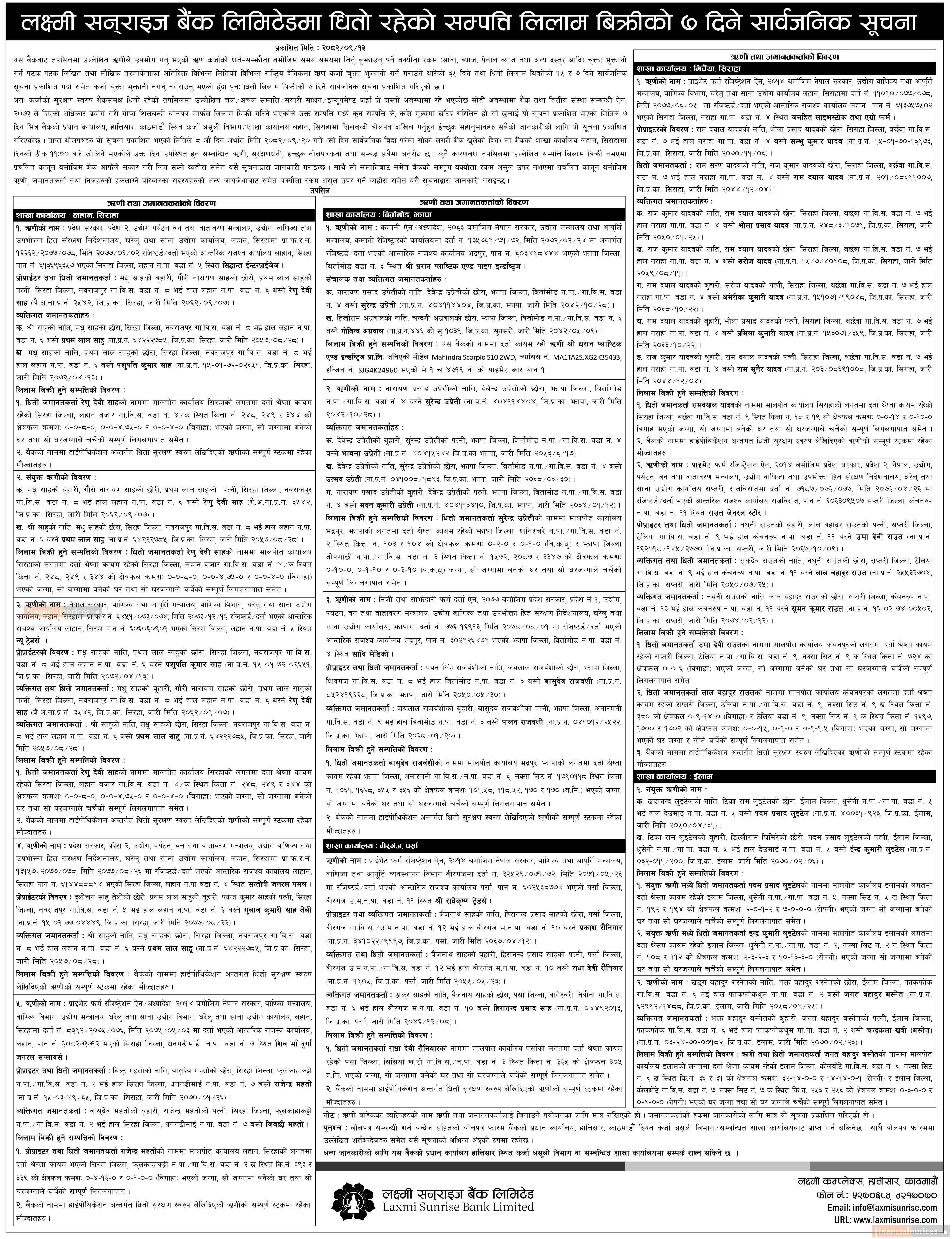 लक्ष्मी सनराइज बैंकमा धितो रहेको सम्पत्ति लिलाम बिक्रीको ७ दिने सार्वजनिक सूचना -