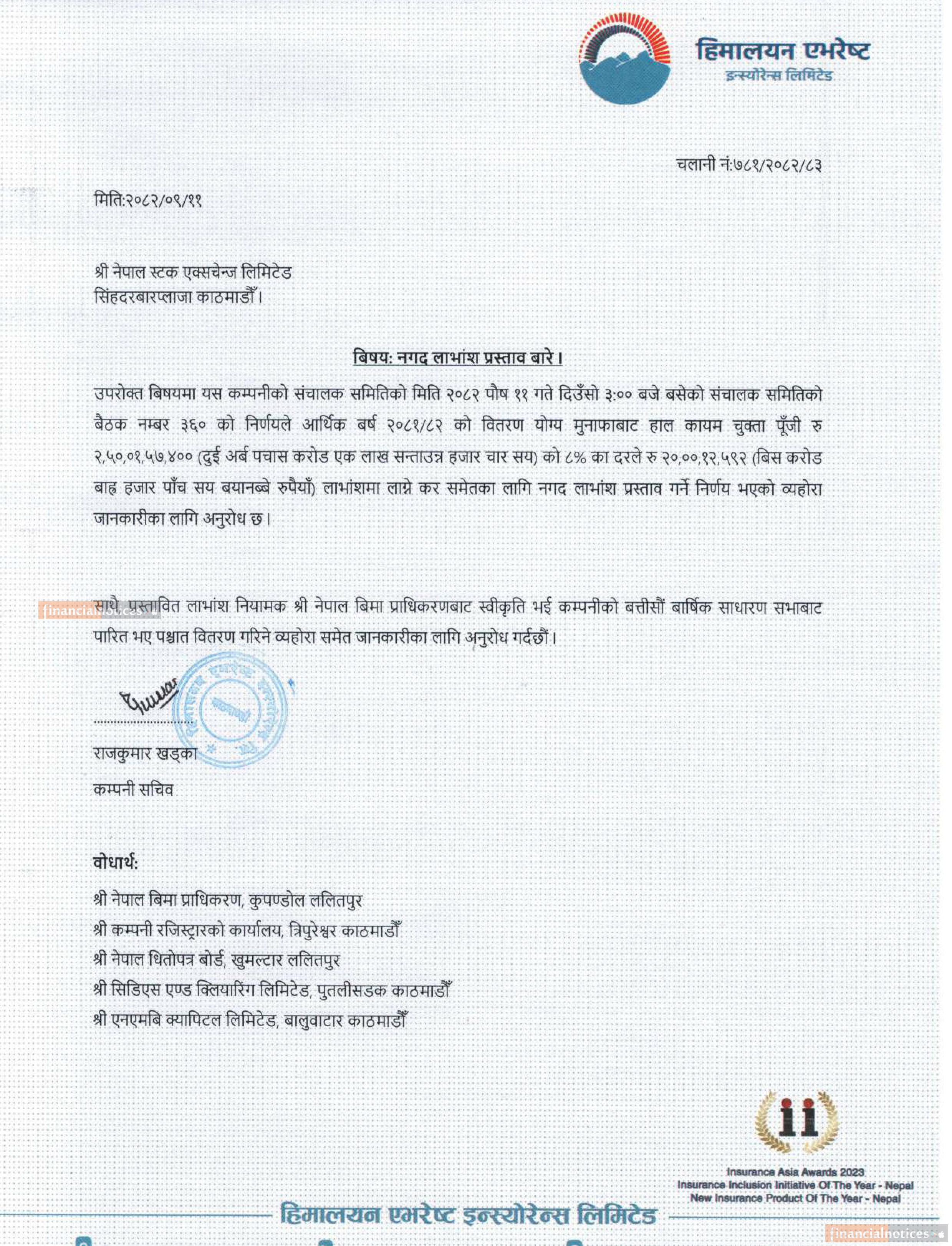 हिमालयन एभरेष्ट इन्स्योरेन्सको लाभांश घोषणा सम्बन्धी सूचना