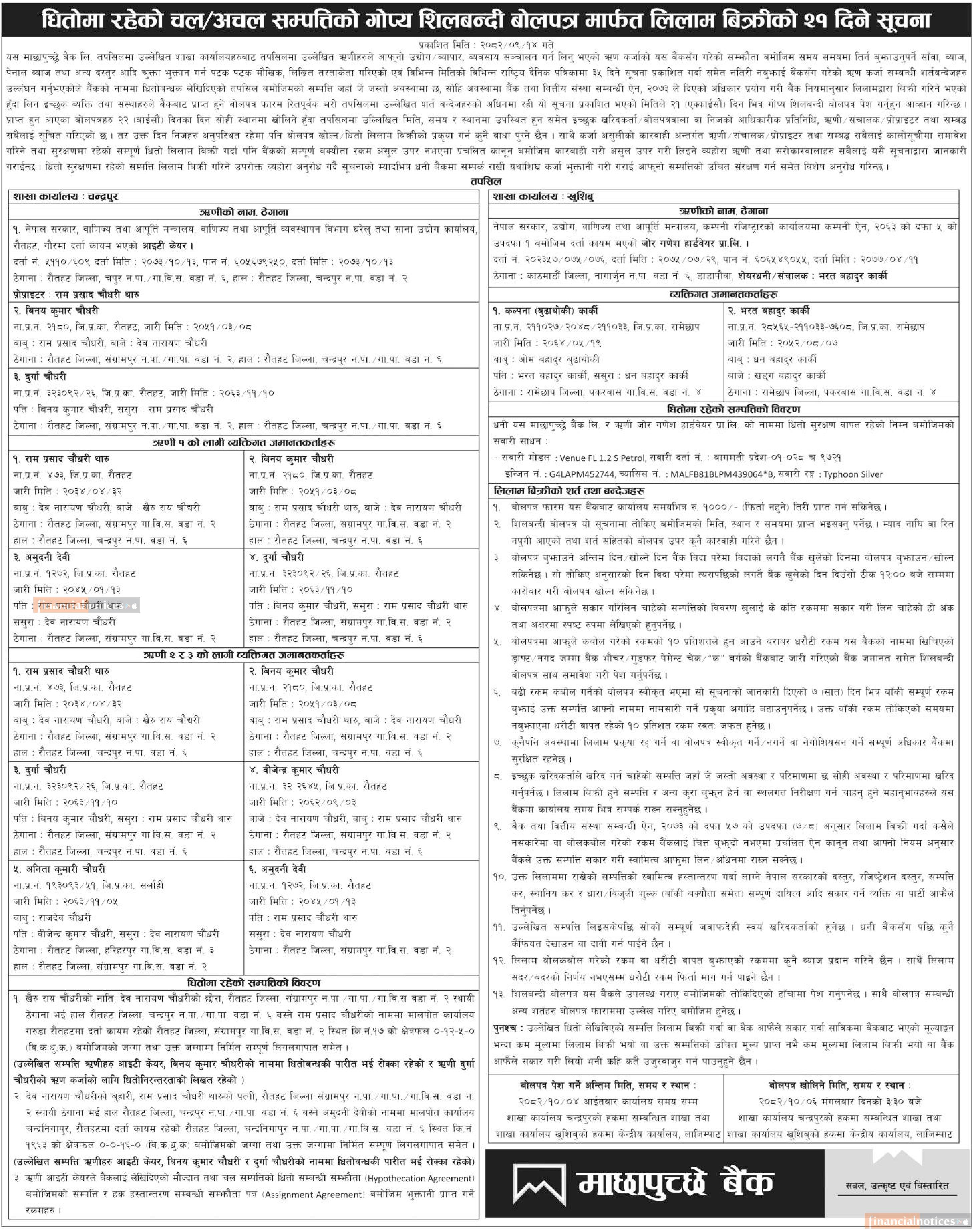 धितोमा रहेको चल–अचल सम्पत्तिको गोप्य शिलबन्दी बोलपत्रमार्फत लिलाम बिक्रीका २१ दिने सूचना
