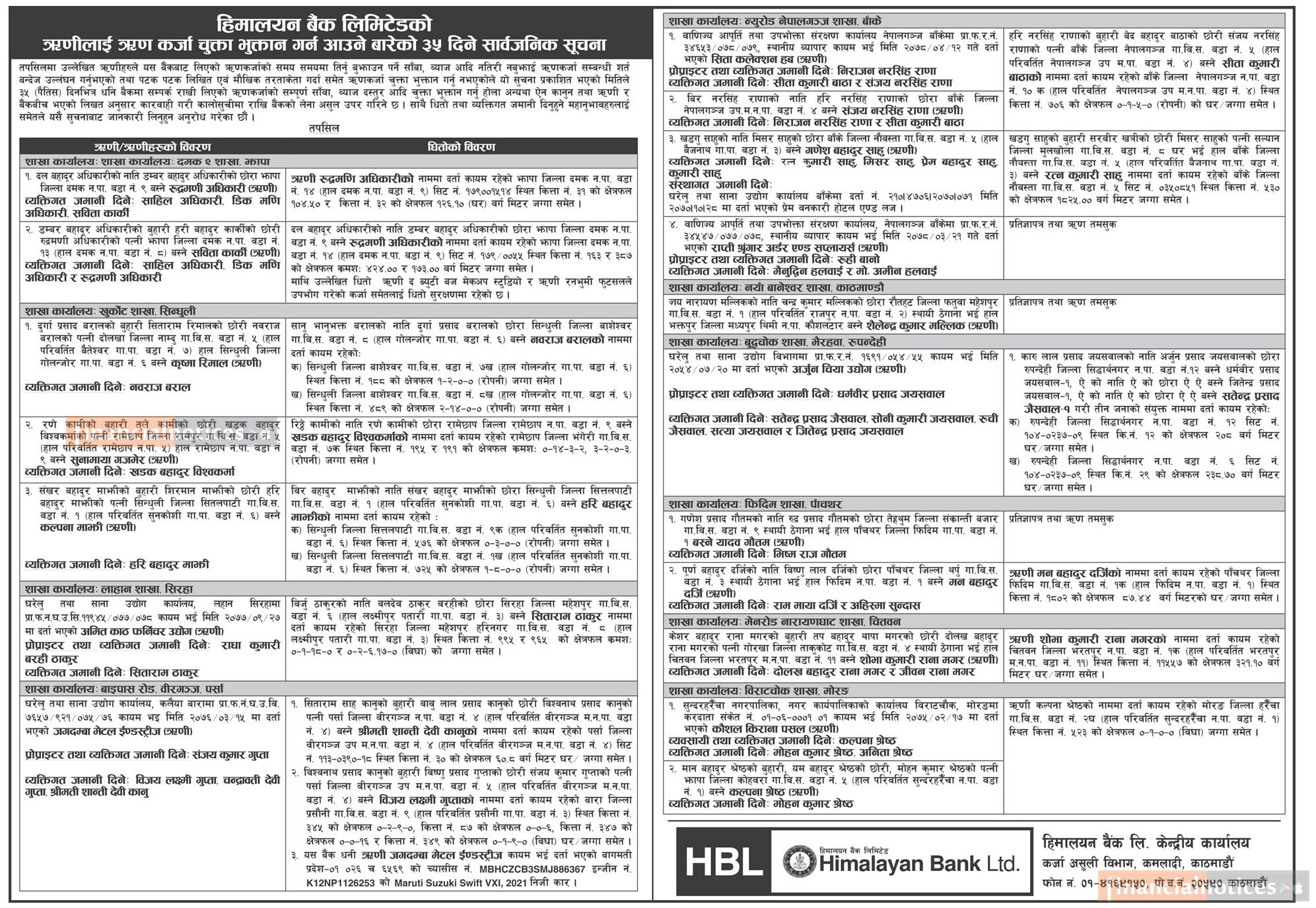 हिमालयन बैंकका ऋणीहरुलाई ऋण कर्जा चुक्ता भुक्तान गर्ने सम्बन्धी सूचना -