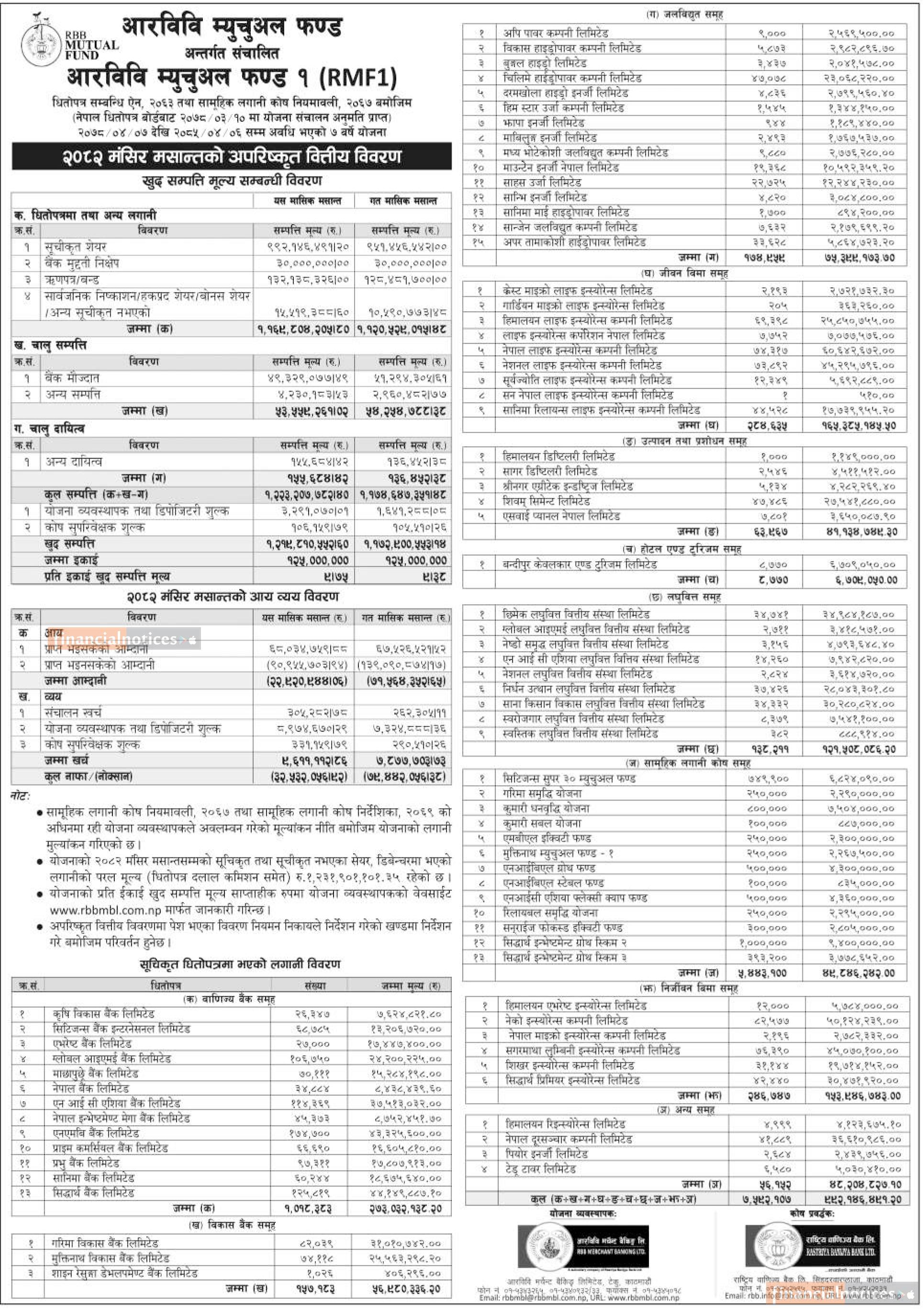 RBB Merchant Banking has published “RBB Mutual Fund-1” Net Asset Value till Mangsir, 2082