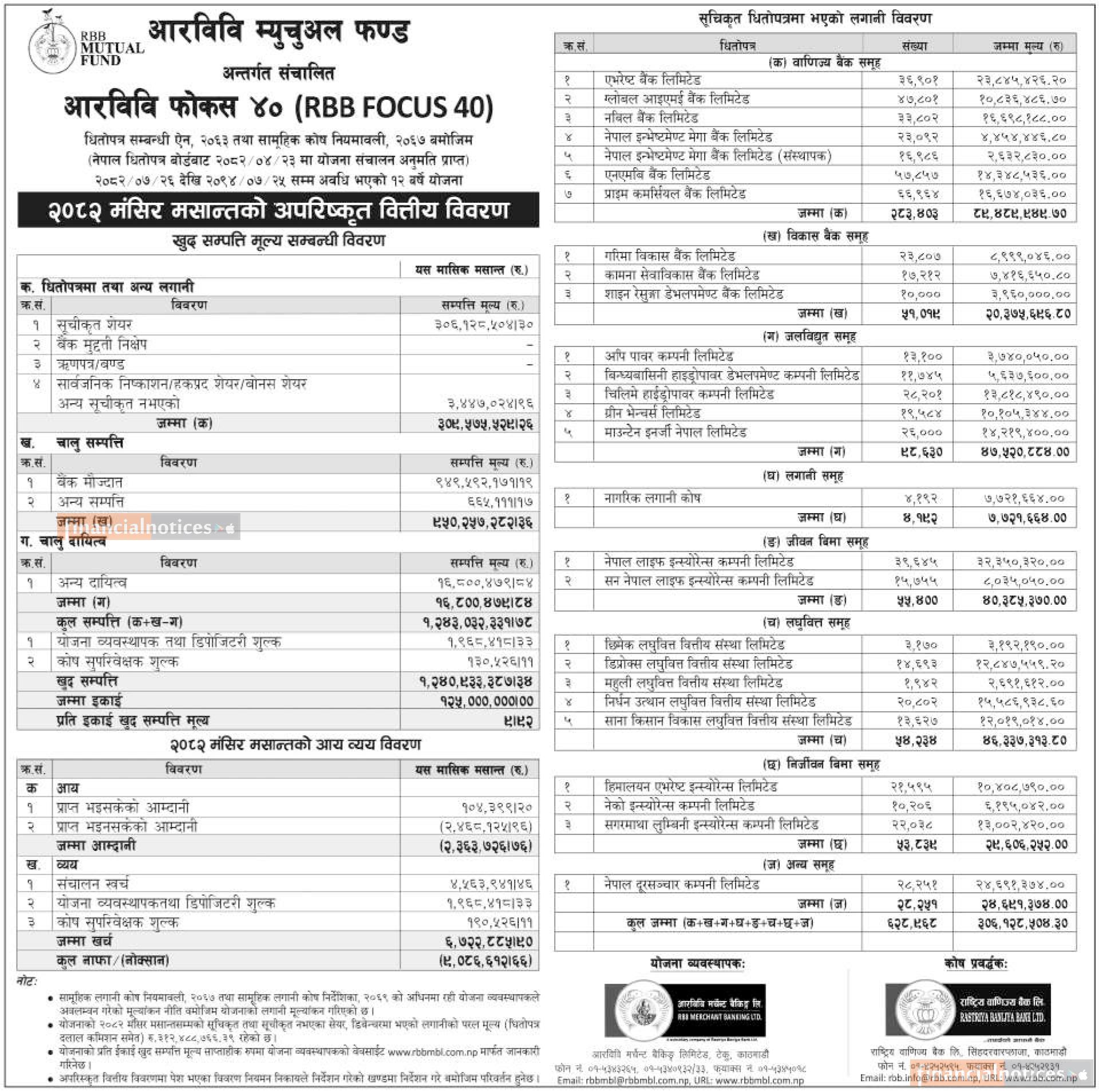 RBB Merchant Banking has published “RBB Focus 40” Net Asset Value till Mangsir, 2082